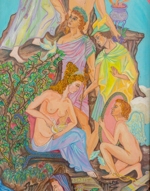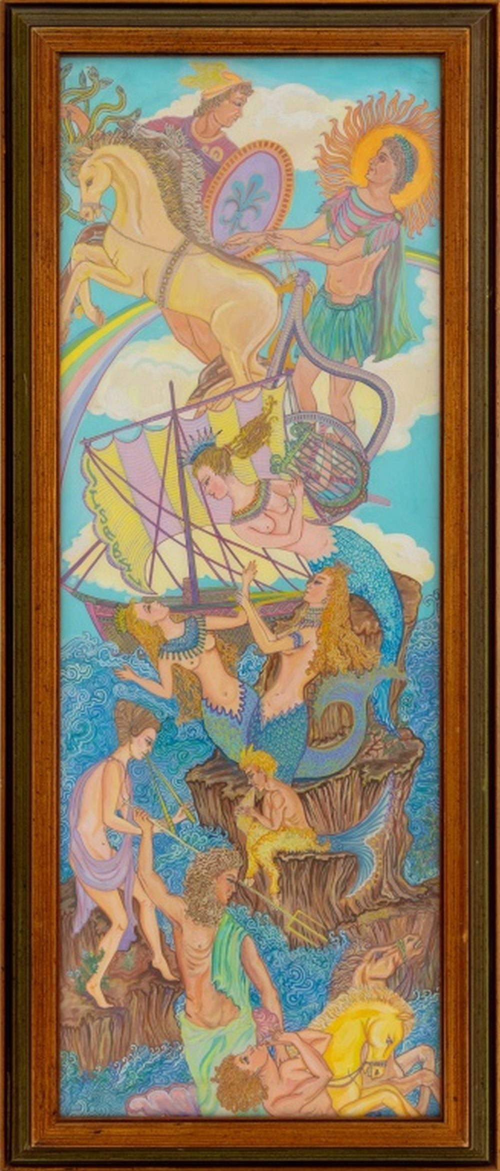 Art Nouveau Style Mythology Scene Gouache, Pr