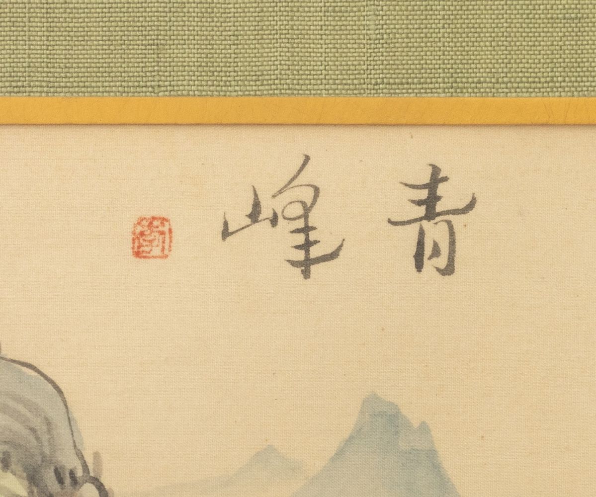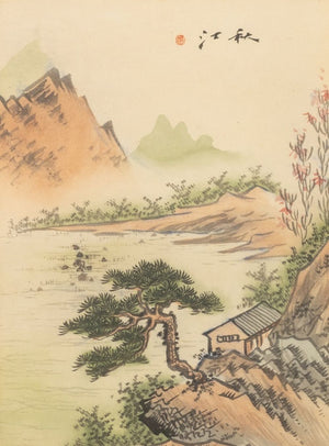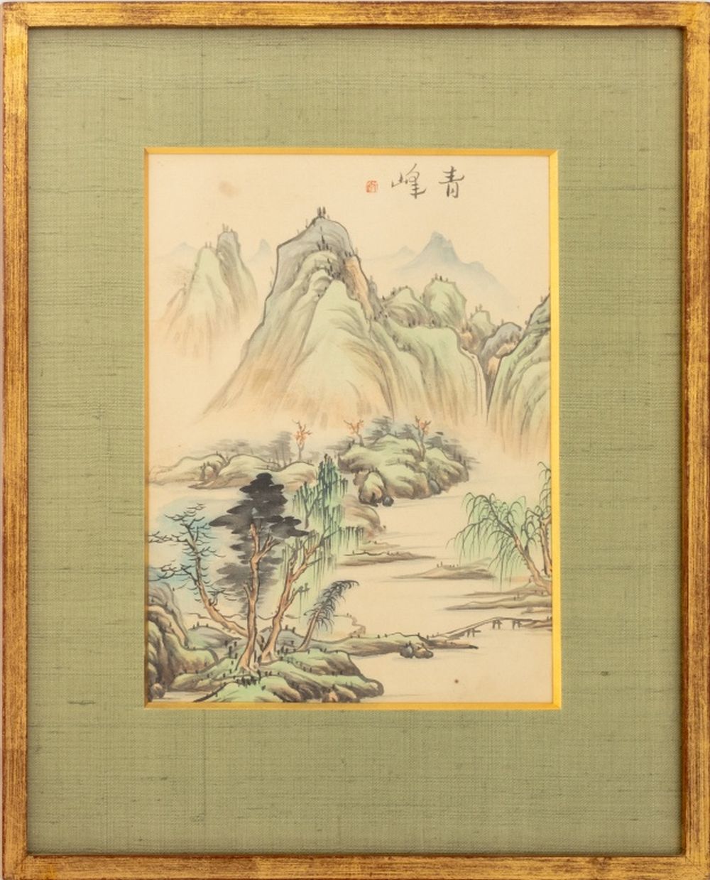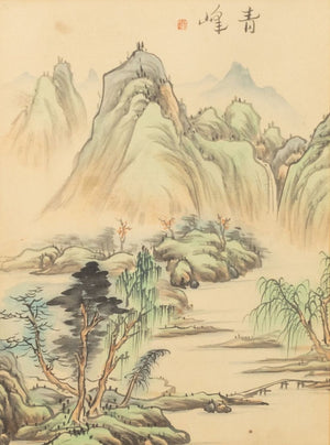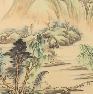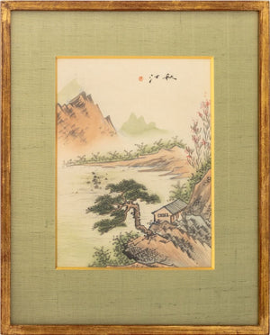 Japanese Mountain Landscape Watercolor on Silk, 2