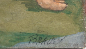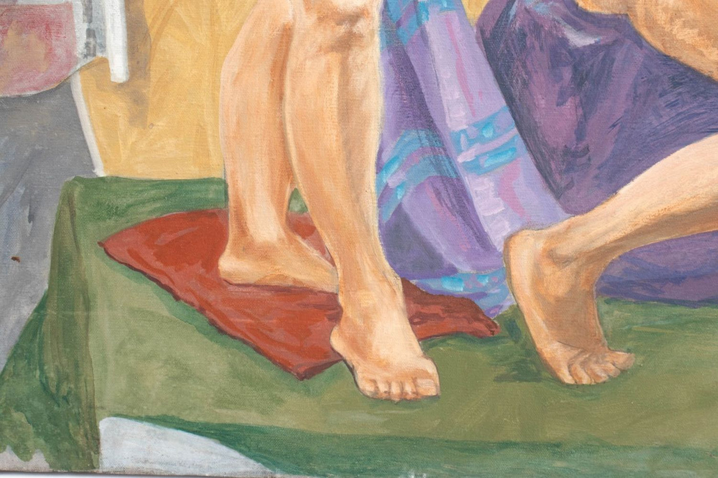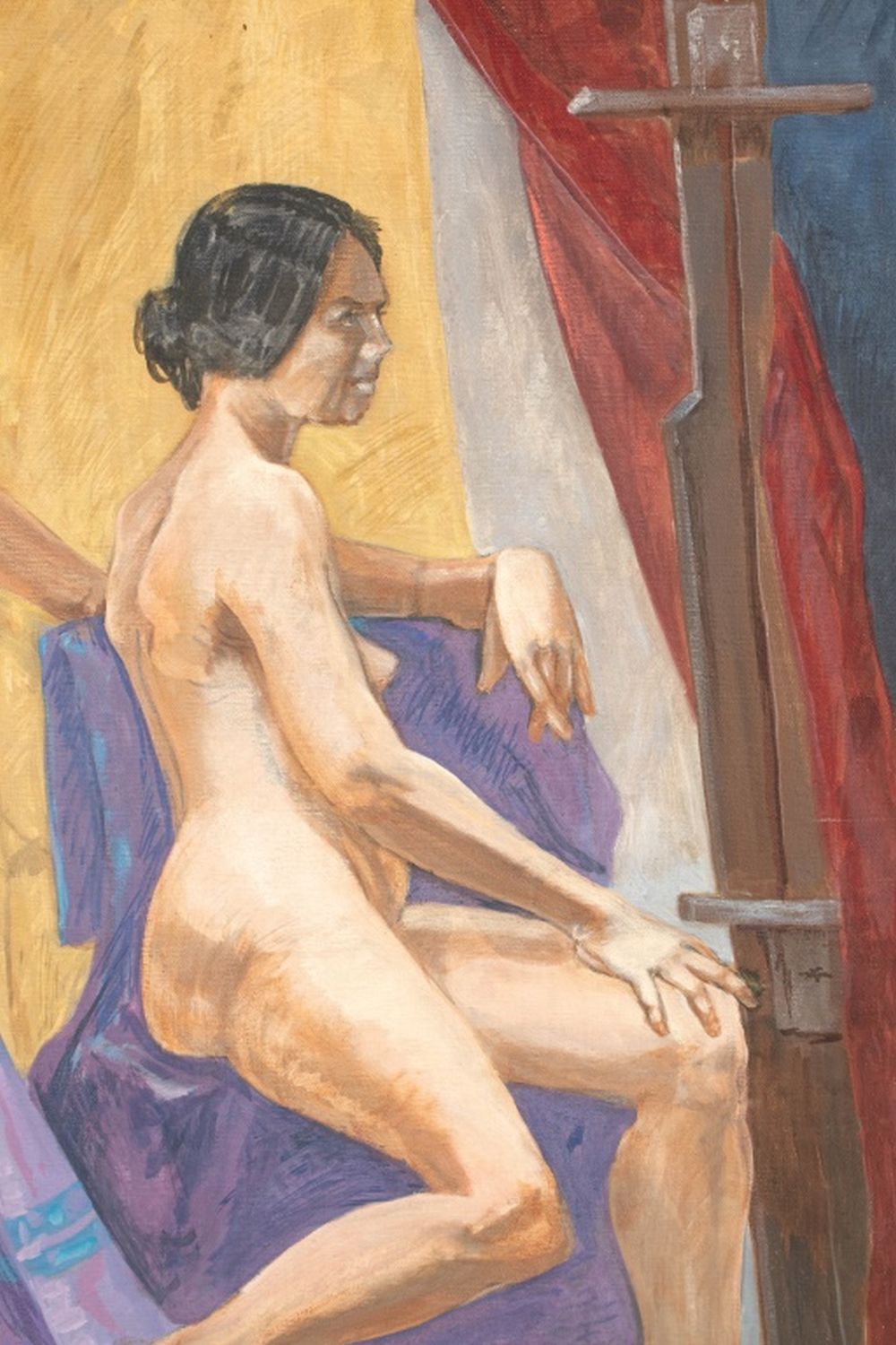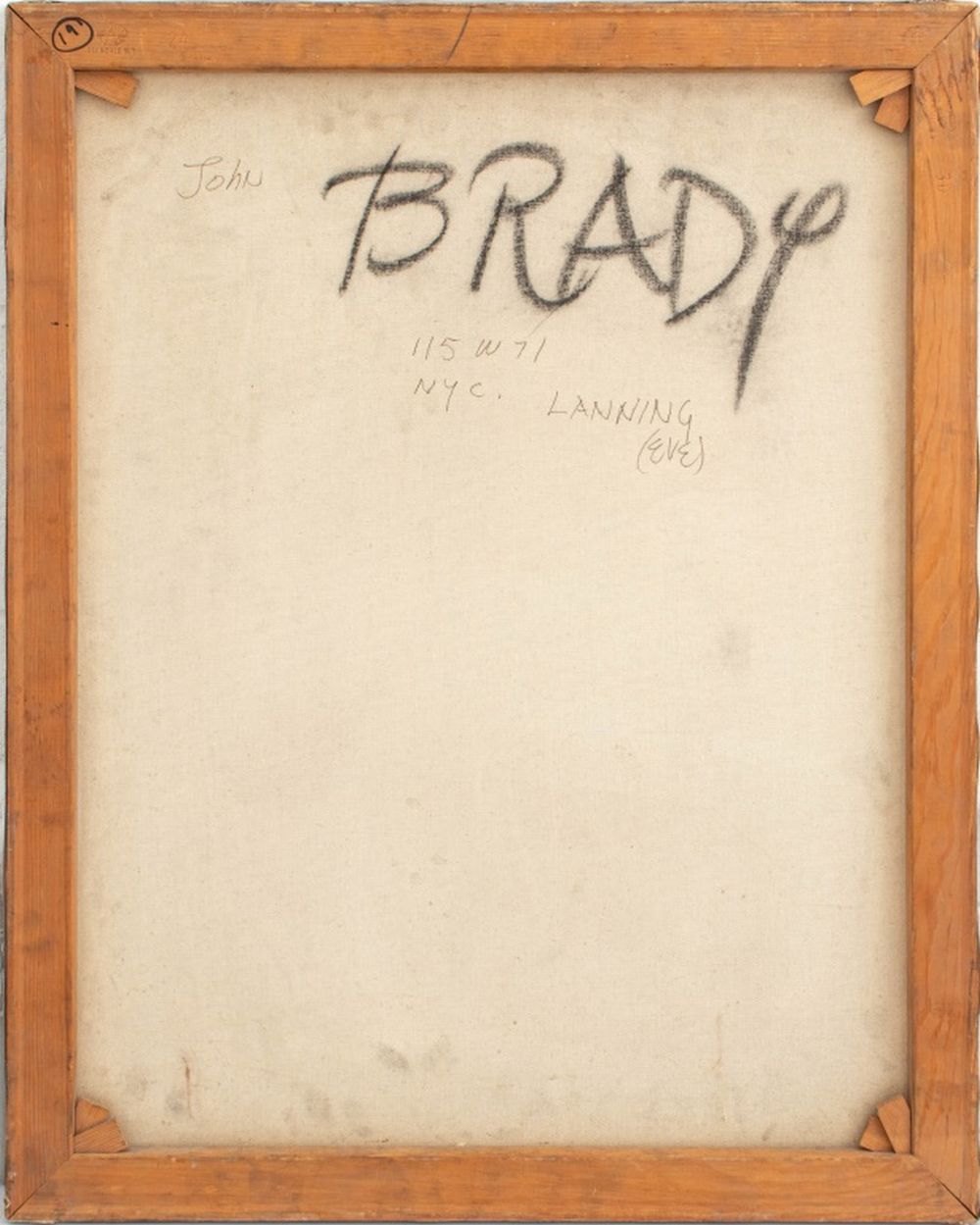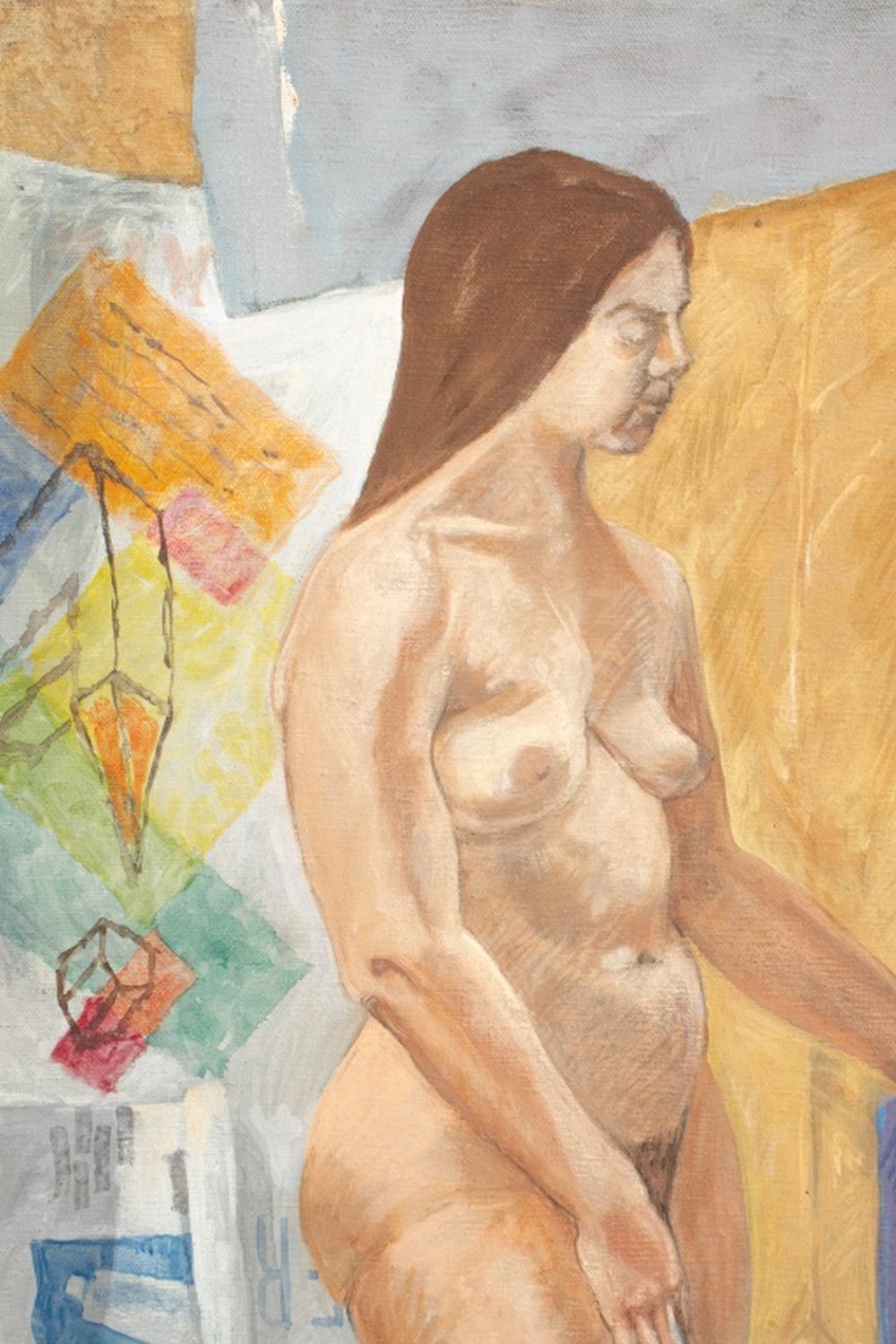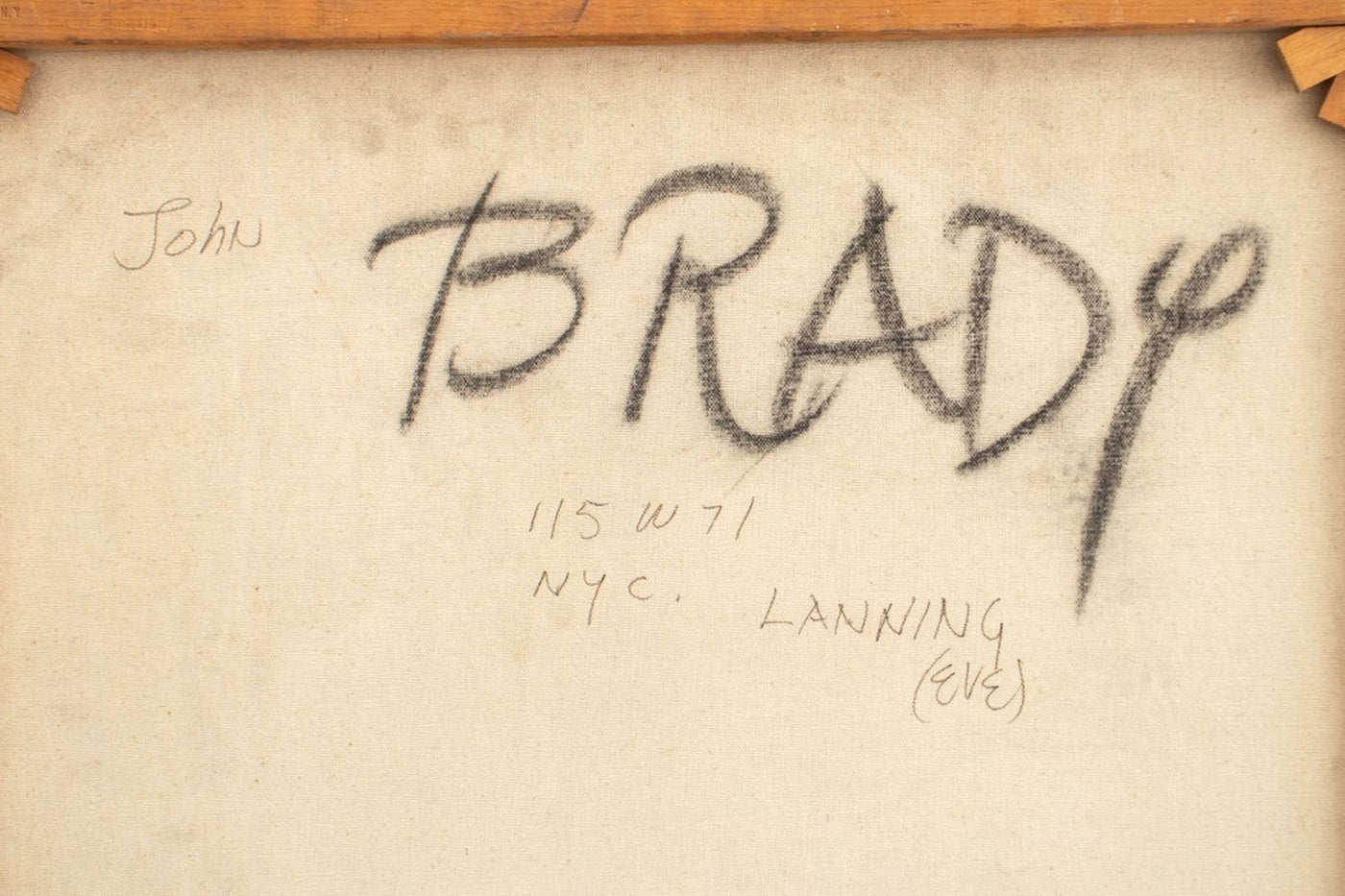 John Braden (Brady, American, XX), Two Nude Female Figures, Oil on Canvas, depicting one standing and one sitting female figure, signed lower right, signed and marked "Lanning (Eve)" to verso. 30" H x 24" W. Provenance: From the Allen Tucker Memorial Collection. Keywords: Painting, Figural, Figurative, Models, Study, 20th Century School, Post-War and Contemporary Art