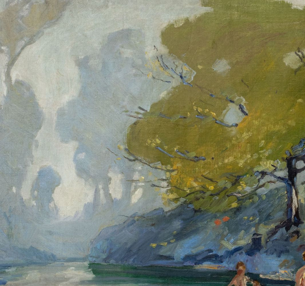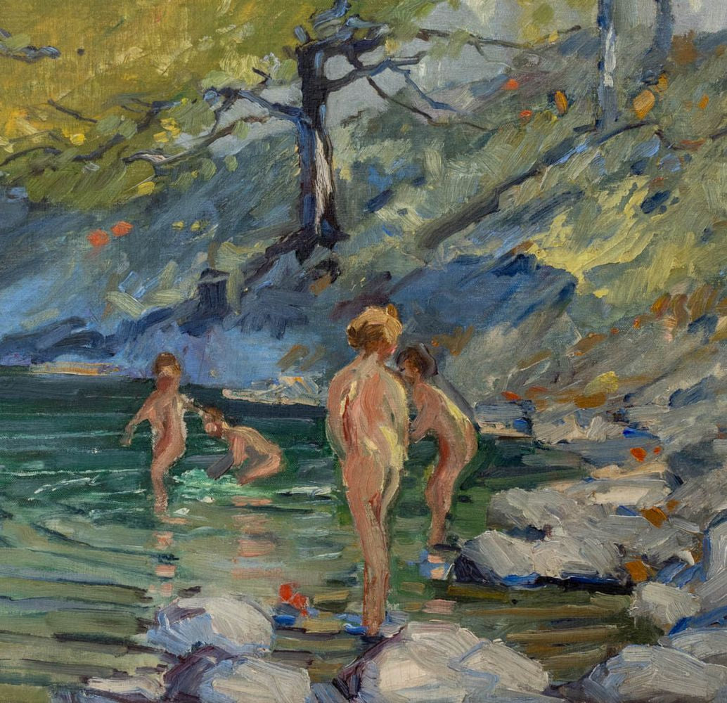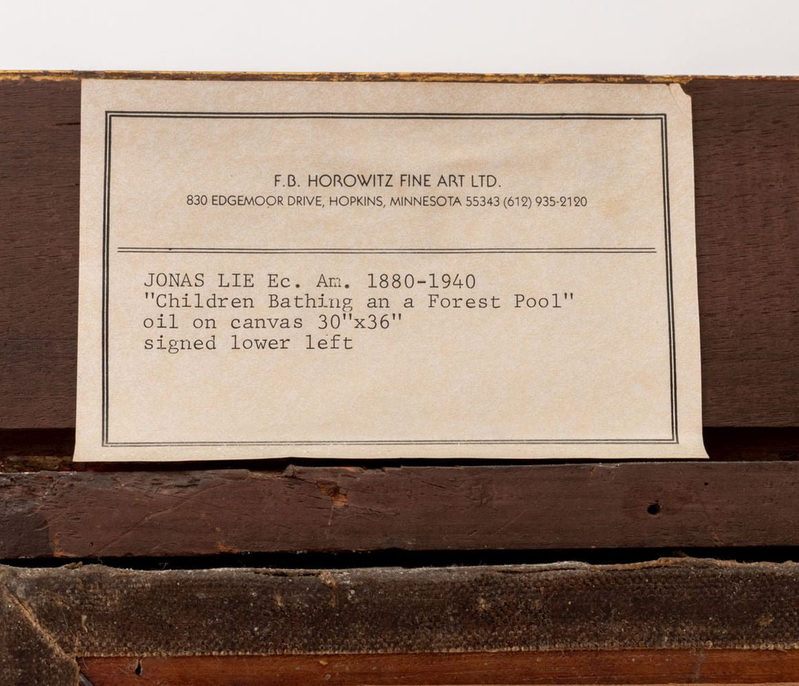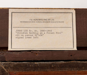 Jonas Lie "Children Bathing in a Forest Pool" Oil