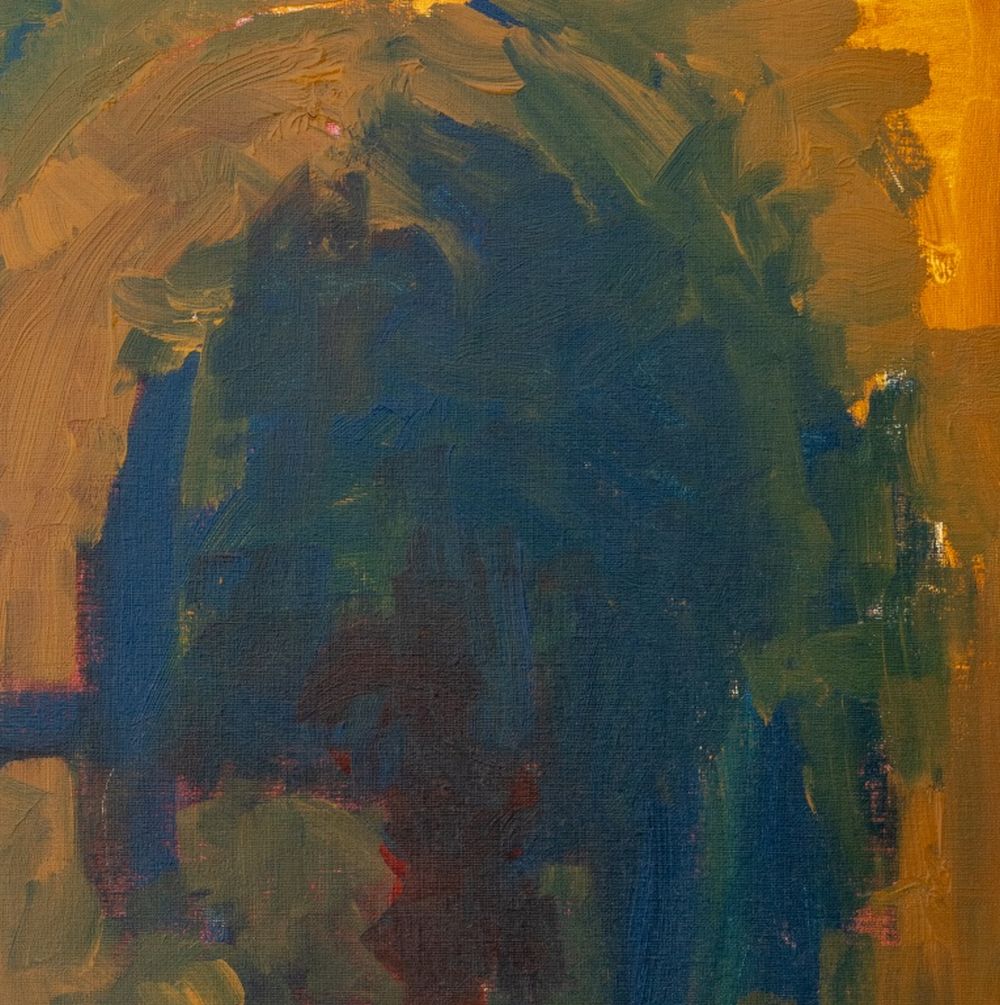 Robert O'Meara (American, 1957-2024), Abstract Composition in Blue and Yellow, Oil on Canvas, unsigned, unframed. 20" H x 16" W. Provenance: From a 333 East 75th Street Estate. Keywords: Painting, Oil painting, Works on Canvas, Ochre, Abstraction, Abstract Expressionism, Expressionist, AbEx, Color field, Contemporary Art
