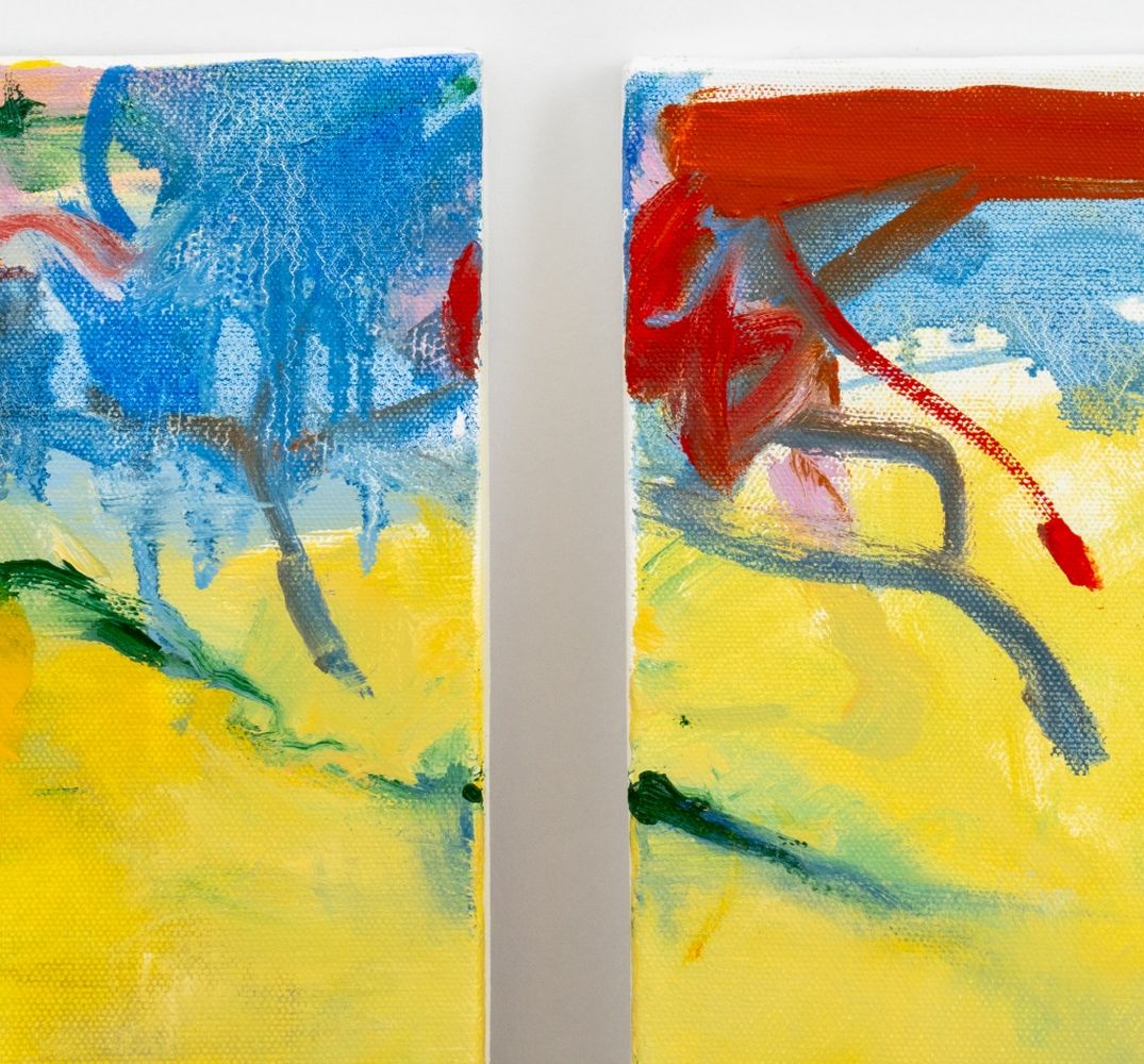 Robert O'Meara Abstract in Yellow Triptych Oil