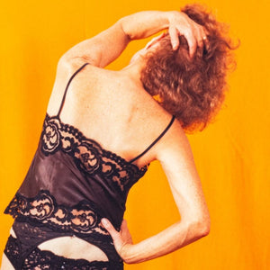 Anne Sager (American, 1930-2024), Standing Female Figure, Color Photograph, Chromogenic Print, from the "Women Over 50" series, woman in lingerie on yellow ground, stamped “Anne Sager 19” to verso, unframed. Image: 6.75" H x 5.5" W; sheet: 9.5" H x 7.5" W. Provenance: From a 35 East 75th Street Estate. Keywords: Color Photography, Prints, Multiples, Portrait, Portraiture, Intimate, Sensual, Vanity, Women Artists, Contemporary Art
