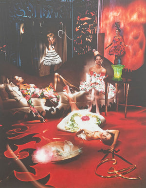 Dean Chamberlain (American, b. 1954), Two Cibachrome Prints in Colors, comprising: Women in a Red Room and Yellow Tulips, unsigned, both float mounted in wood frames. Larger image: 19.25" H x 15.5" W; frame: 25" H x 20.5" W x 1.25" D. Provenance: Bonhams, New York, 2 April 2024, Lot 50. From a New York City Area Collection. Keywords: Photography, Photograph, Light effects, Long exposure, Light photography, Timelapse, Color photography, Paint with light, Figural, Figurative, Still life, Nature Morte, Polychrome, Contemporary Art