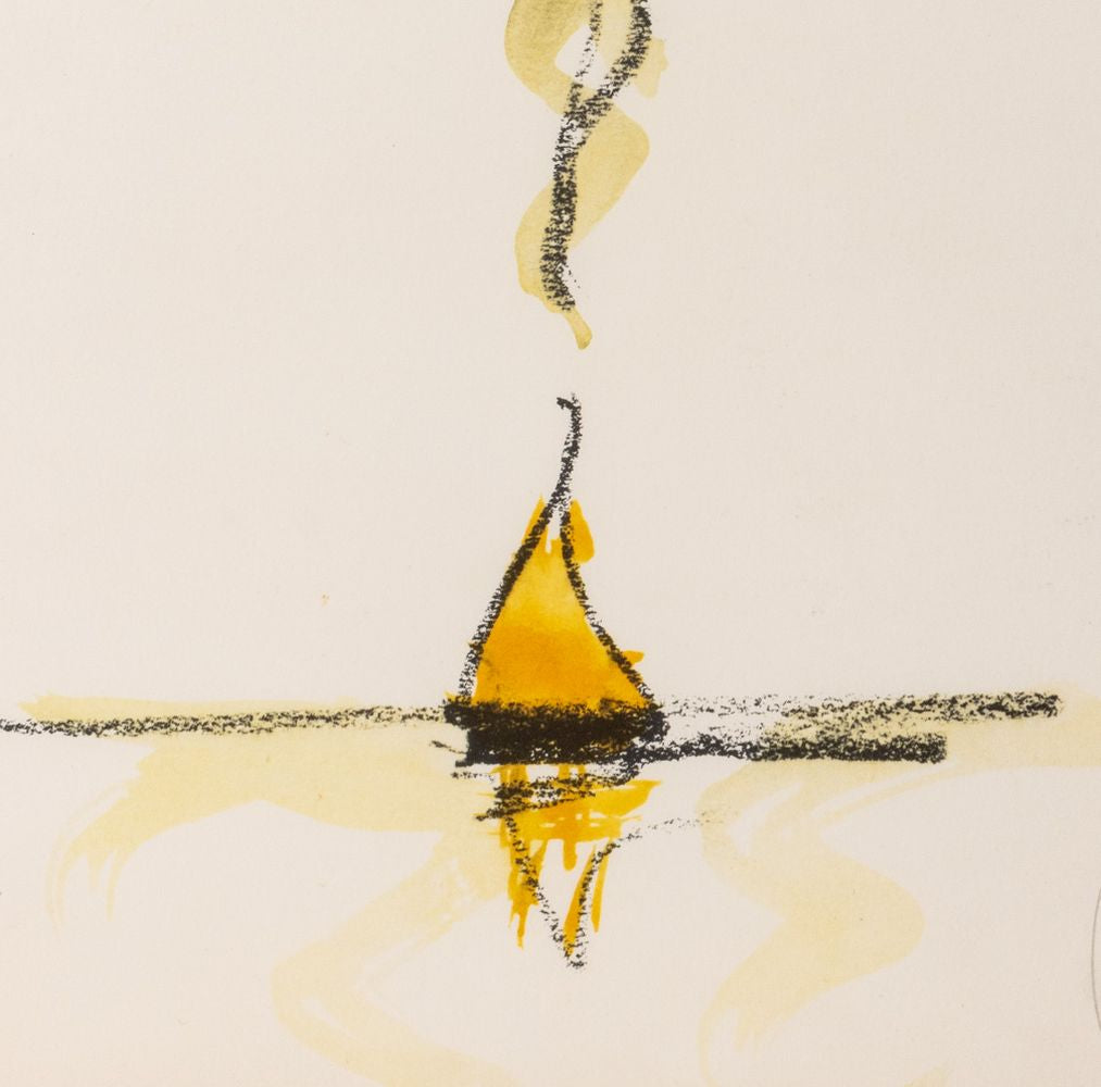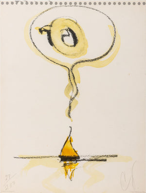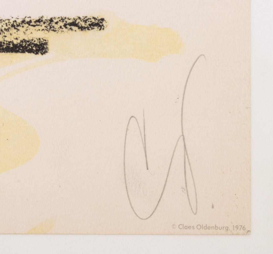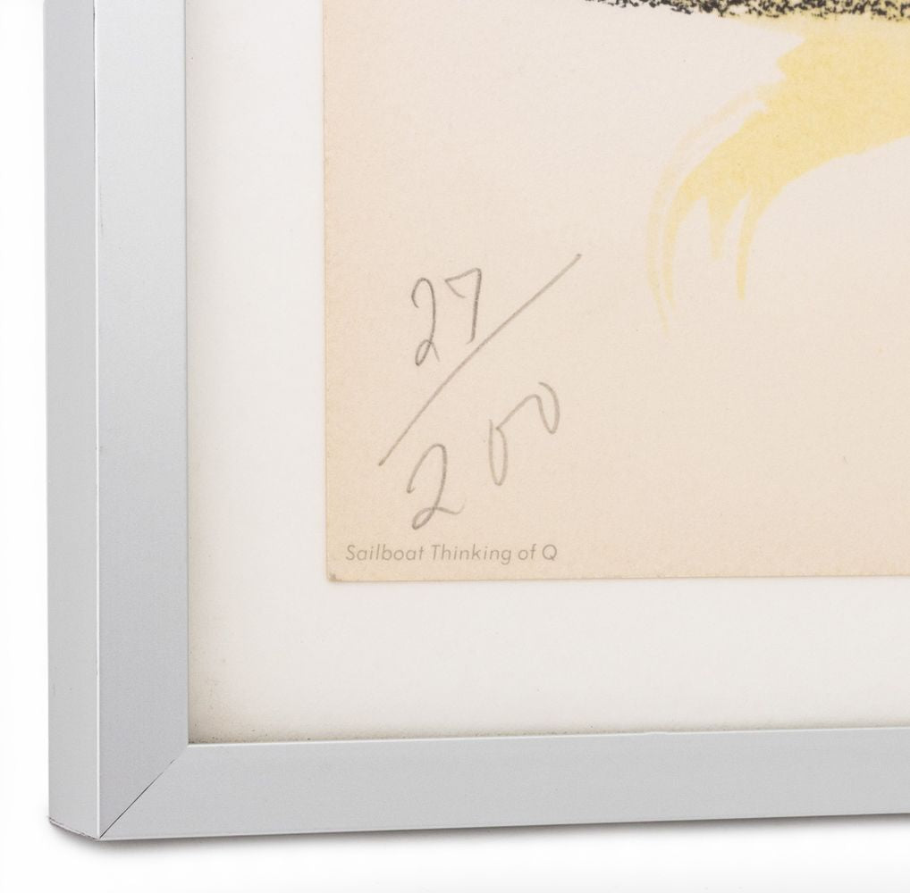 Claes Oldenburg (Swedish/American, 1929-2022), "Sailboat Thinking of Q", Offset Lithograph in Colors, 1976, signed in pencil "C.O." lower right and numbered edition "27/200" lower left, silver-tone metal frame. Image: 15.75" H x 11.75" W; frame: 18.25" H x 14.5" W x 1.5" D. Provenance: From the Collection of Laura and Lewis Kruger. Keywords: Prints, Multiples, Abstraction, Abstract composition, Seascape, Post-War and Contemporary Art, 20th Century Art