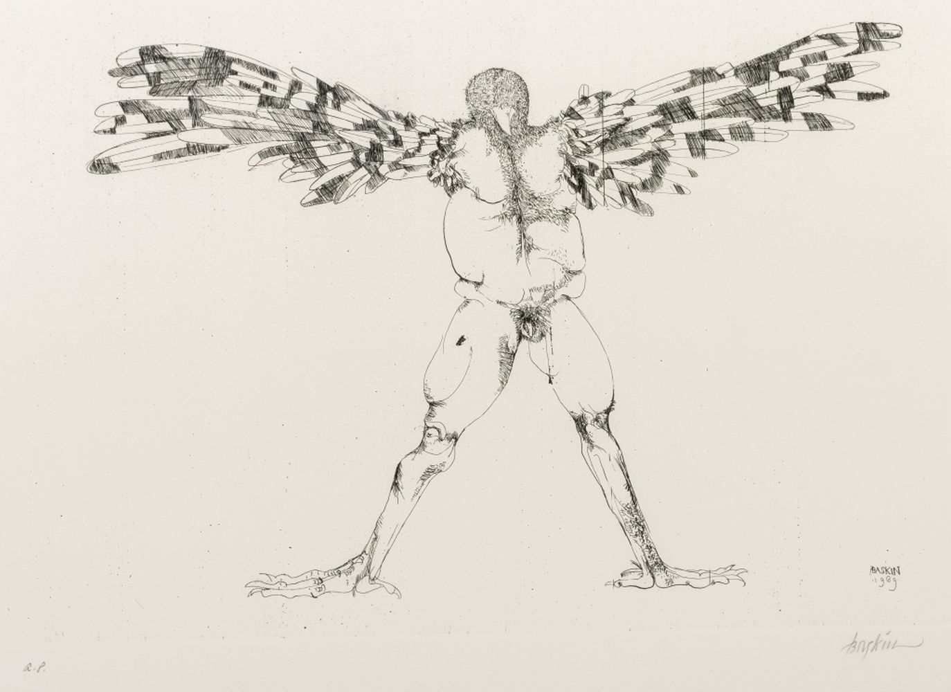 Leonard Baskin Surrealist Figural Etchings, 3