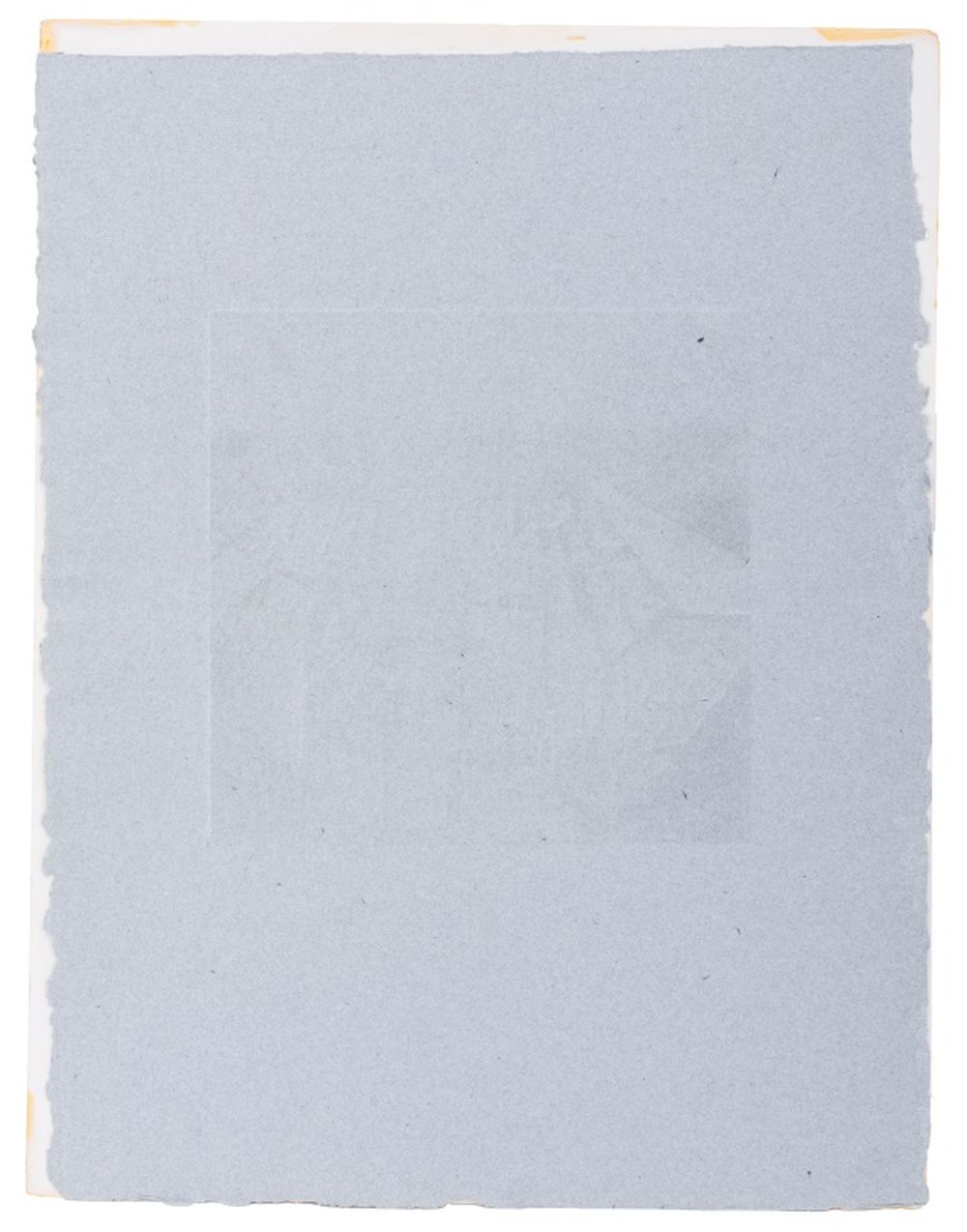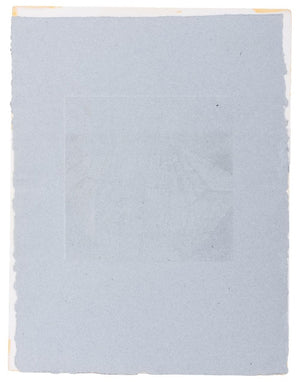 Marie-Therese Fayet (Spanish, b. 1934), "Force et Fragilite" [Strength and Fragility], Mixed Media Aquatint on Embossed Handmade Blue Paper, signed in pencil, titled and numbered edition "71/100" to bottom margin, unframed. Sheet: 29" H x 23" W. Provenance: From a West 12th Street Estate. Keywords: Prints, Multiples, Intaglio, Abstract, Geometric, European, Continental School, Women Artists, 20th Century Art