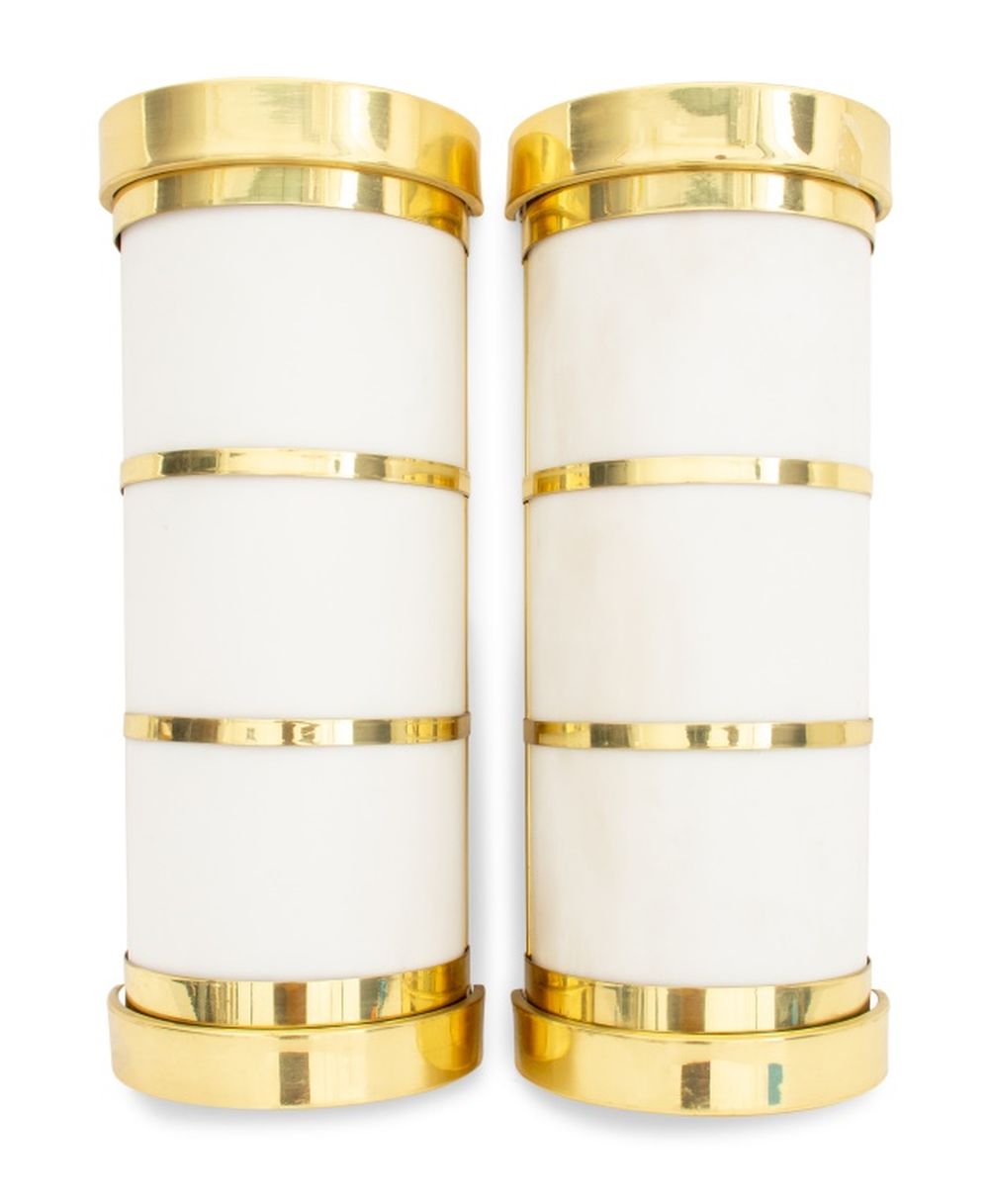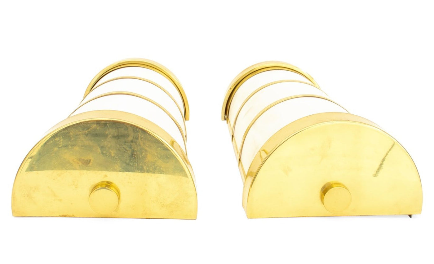 Acrylic Shade Brass Mounted Wall Sconces, Pair