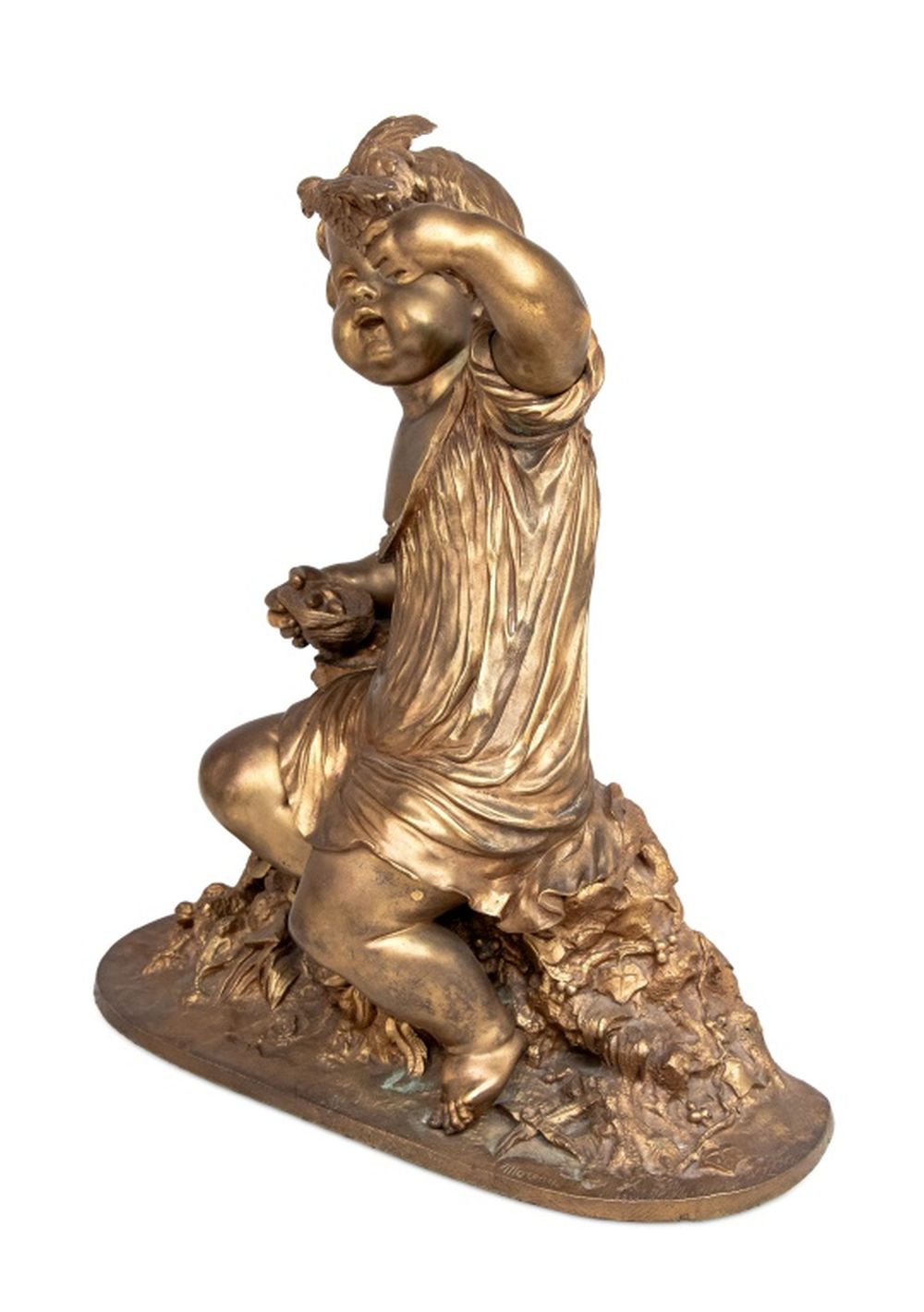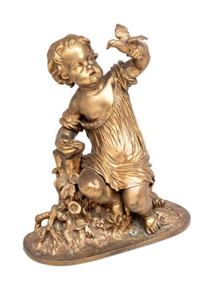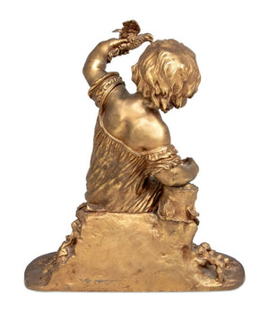 Auguste Moreau "The Egg Thief" Gilt Bronze