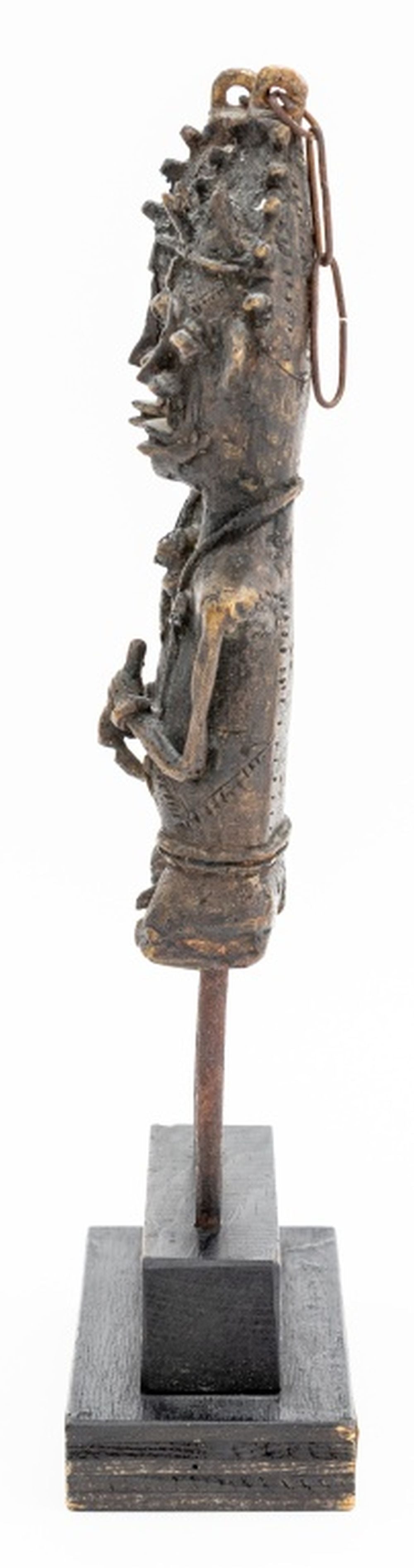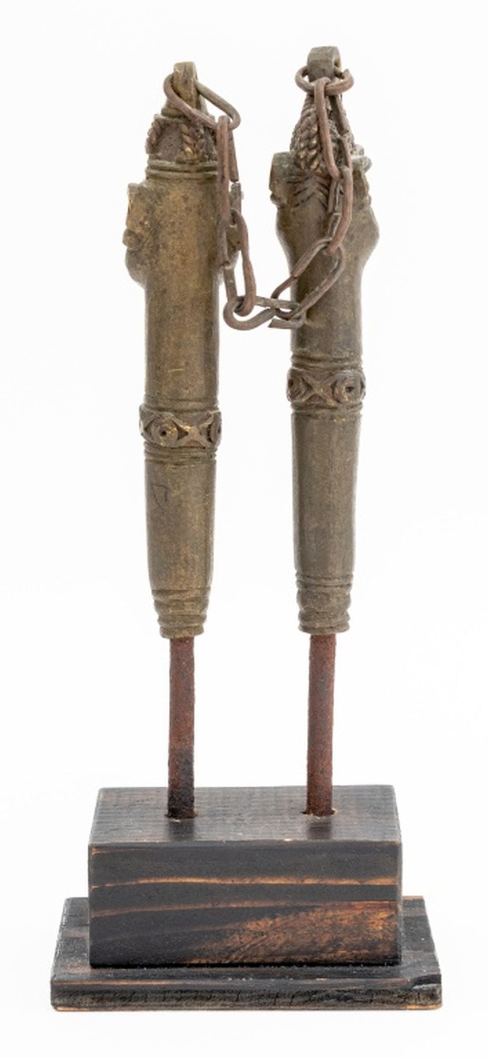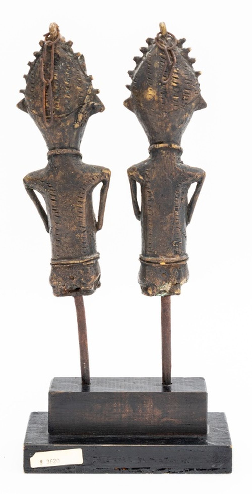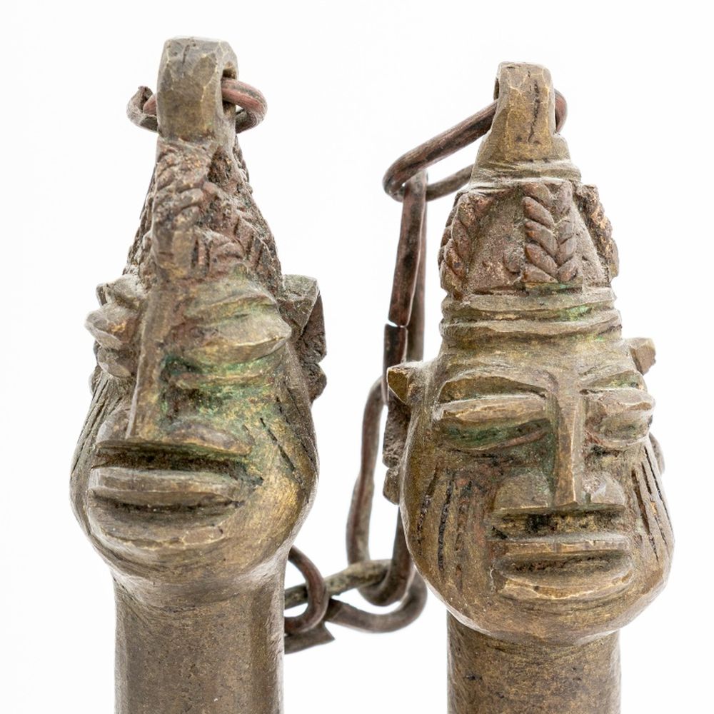 Yoruba Edan Ogboni Figural Brass Staffs, 2 Pairs