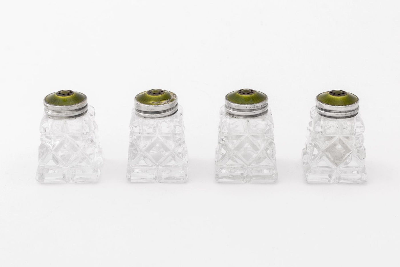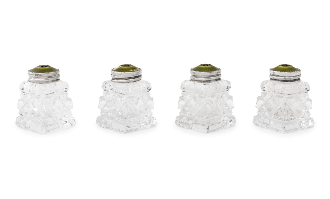 Norwegian Sterling Silver & Glass Salt Shakers, 4
