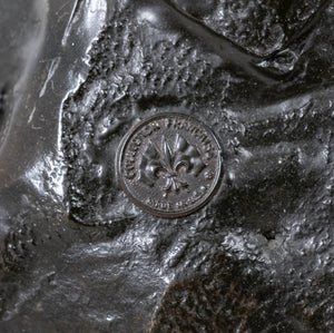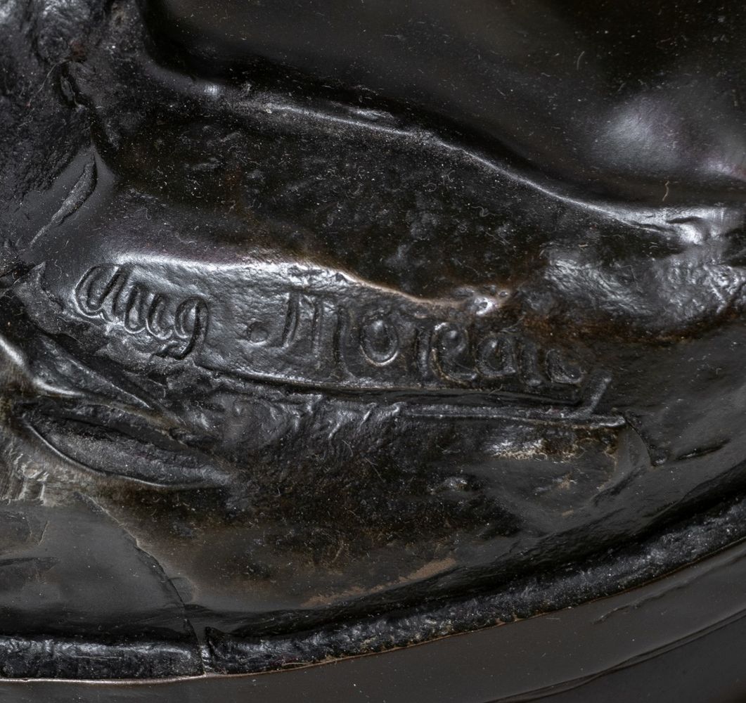 Auguste Moreau Bronze and Leadlight Lamp