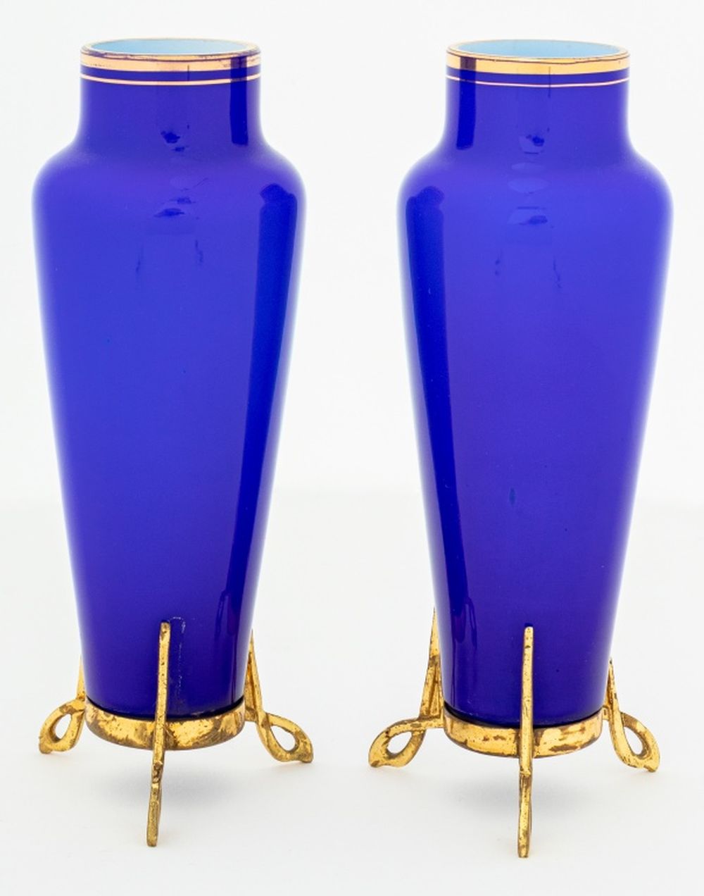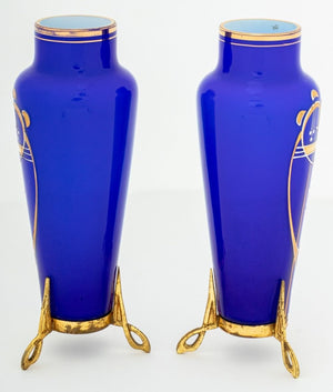 Austrian Secessionist Cobalt Blue Glass Vases, Pr.