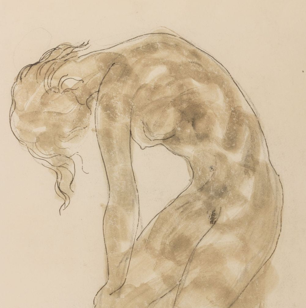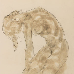Abraham Walkowitz (Russian/American, 1878-1965), Nude Woman, Watercolor on Paper, signed in pencil lower right, linen covered frame. Image: 13" H x 9.5" W; frame: 20.25" H x 16.25" W x 1" D. Provenance: From the Collection of Laura and Lewis Kruger. Keywords: Painting, Watercolour, Works on Paper, Figural, Figurative, Figure study, Modernist, American Modernism, Modern Art