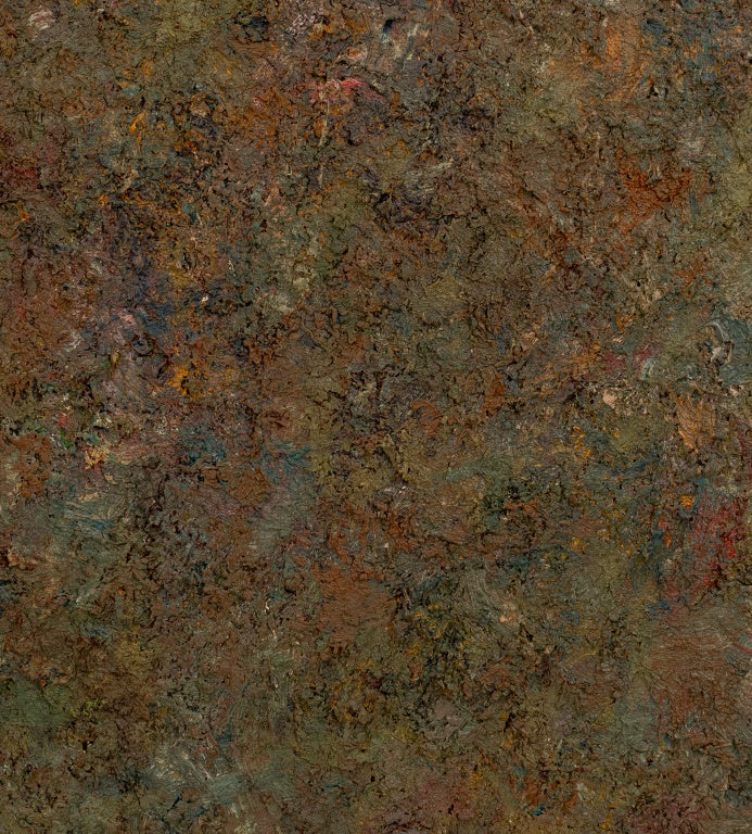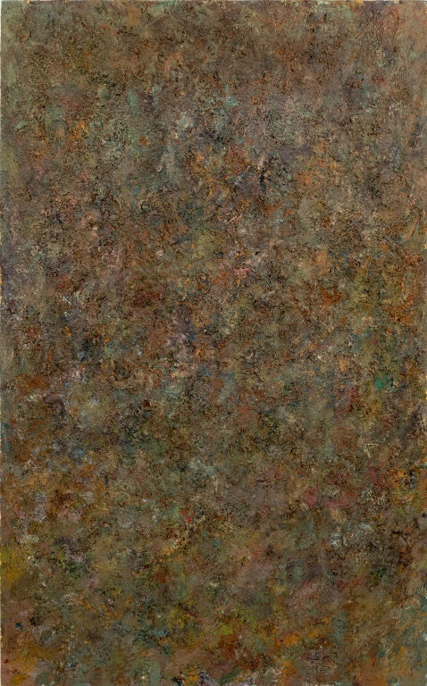 Andy Miller (American, b. 1950), Abstract Composition, Oil on Canvas, impasto details, green brown with heavy texture, artist's studio stamp to verso, apparently unsigned, unframed. 96" H x 60" W.