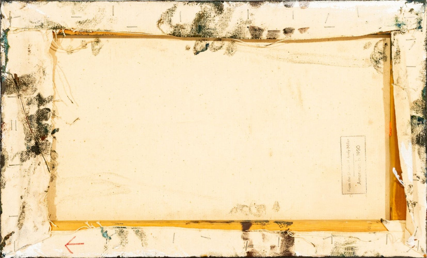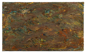 Andy Miller (American, b. 1950), Abstract Composition, Oil on Canvas, impasto details, dark reddish brown with blue and yellow undertones, unsigned, artist's studio stamp to verso, unframed. 12.25" H x 20" W. Provenance: From the Studio of Andy Miller. Keywords: Painting, Works on Canvas, Abstraction, Abstract Expressionist, Abstract Expressionism, AbEx, Post-War and Contemporary Art, Polychrome, 20th Century School, Circle of Milton Resnick and Pat Passlof
