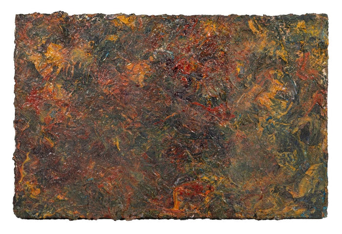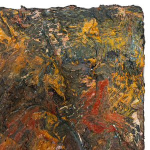 Andy Miller (American, b. 1950), Abstract Composition, Oil on Canvas, impasto details, warm green and cool red with ochre highlights, unsigned, artist's studio stamp to verso, unframed. 9.25" H x 14" W. Provenance: From the Studio of Andy Miller. Keywords: Painting, Works on Canvas, Abstraction, Abstract Expressionist, Abstract Expressionism, AbEx, Post-War and Contemporary Art, Polychrome, 20th Century School, Circle of Milton Resnick and Pat Passlof