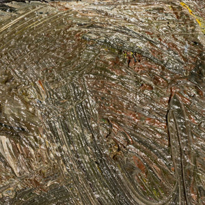 Andy Miller (American, b. 1950), Abstract Composition, Oil on Canvas, impasto details, green brown with white and cool pink highlights, unsigned, artist's studio stamp to verso, unframed. 12" H x 14.25" W. Provenance: From the Studio of Andy Miller. Keywords: Painting, Works on Canvas, Abstraction, Abstract Expressionist, Abstract Expressionism, AbEx, Post-War and Contemporary Art, Polychrome, 20th Century School, Circle of Milton Resnick and Pat Passlof