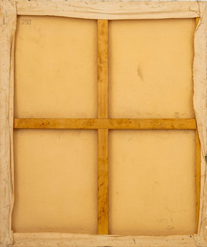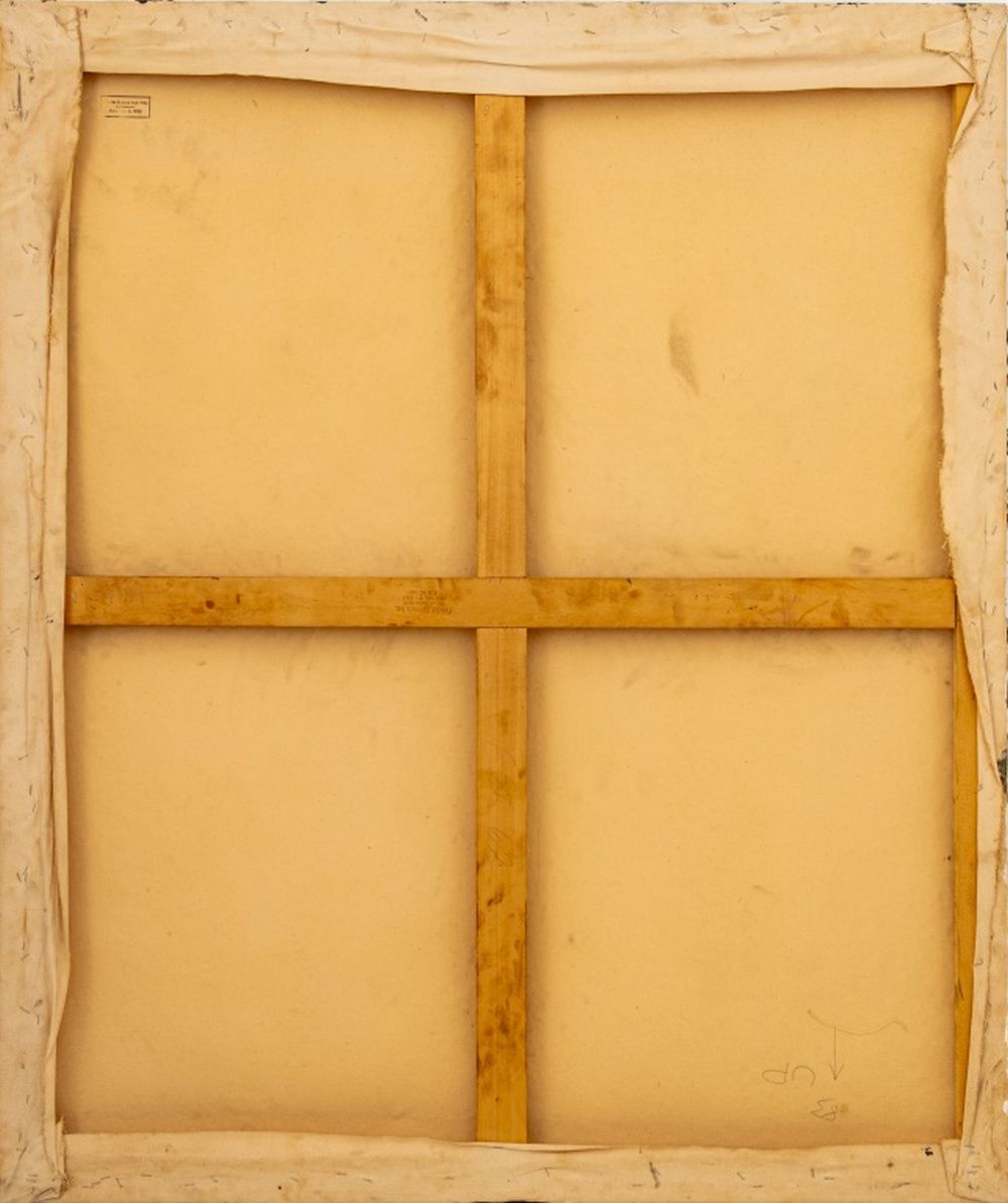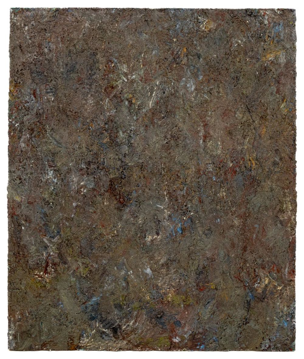 Andy Miller (American, b. 1950), Abstract Composition, Oil on Canvas, impasto details, grey-brown with blue and yellow highlights, with artist's studio stamp to verso, apparently unsigned, unframed. 62.25" H x 52.25" W. Provenance: From the Studio of Andy Miller. Keywords: Painting, Works on Canvas, Abstraction, Abstract Expressionist, Abstract Expressionism, AbEx, Post War and Contemporary Art, Polychrome, 20th Century School, Circle of Milton Resnick and Pat Passlof