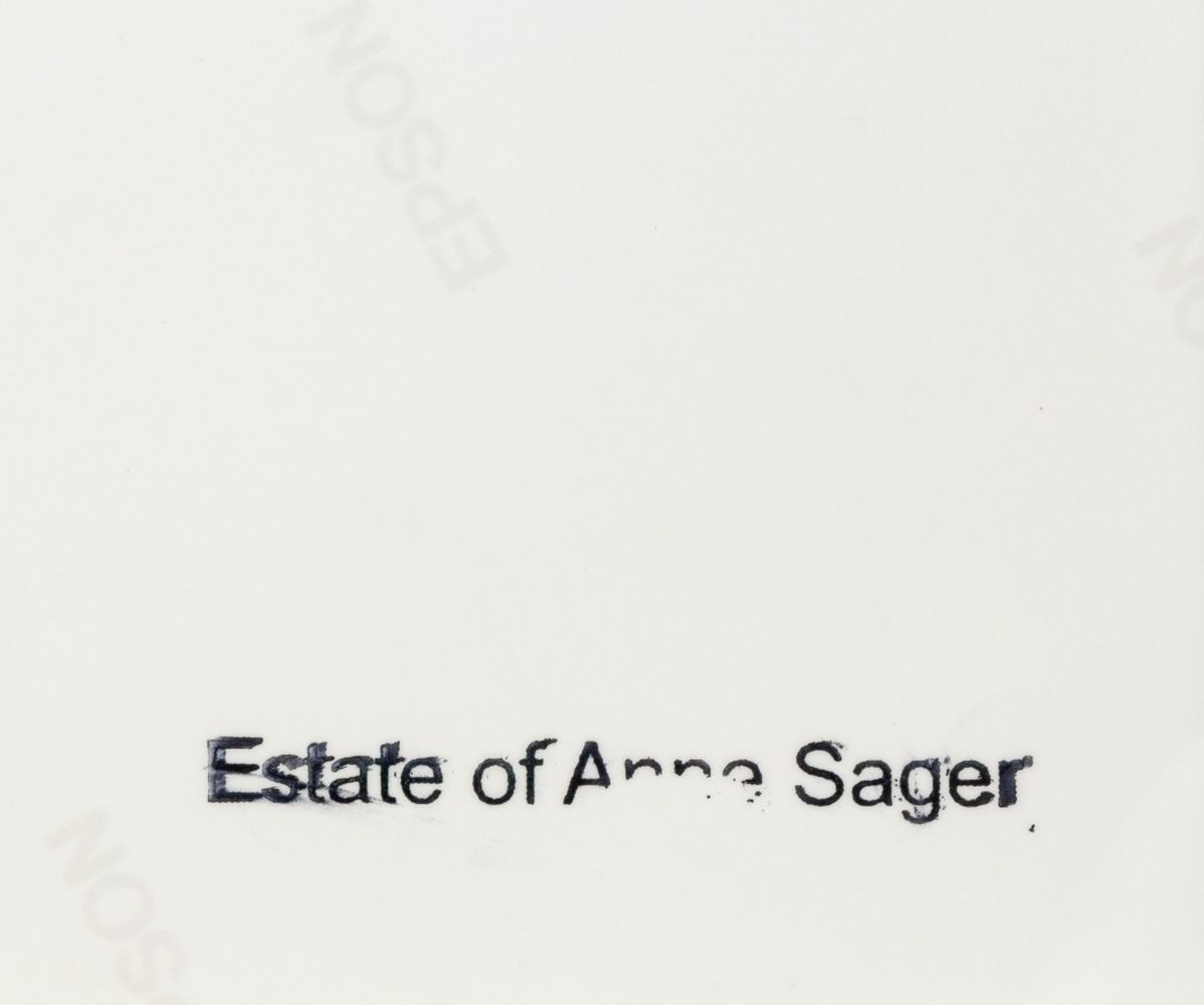 Anne Sager (American, 1930-2024), Airplane Wing, Chromogenic Print, with artist's estate stamp to verso, unframed. Image: 10.5" H x 18" W; sheet: 13" H x 19" W. Provenance: From a 35 East 75th Street Estate. Keywords: Photograph, Photography, Prints, Multiples, C-Print, Abstract, Abstraction, Aileron, Plane, Flight, Sky, Skies, Clouds, Women Artists, Contemporary Art