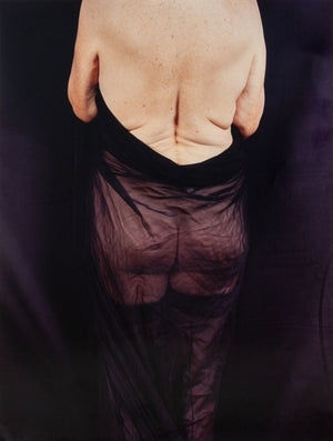Anne Sager (American, 1930-2024), Standing Female Figure, Color Photograph, Chromogenic Print on Kodak Paper, from the "Women Over 50" series, depicting woman in sheer dress, with artist's estate stamp to verso, unframed. 36.75" H x 30" W. Provenance: From a 35 East 75th Street Estate. Keywords: Color Photography, Prints, Multiples, C-Print, Portrait, Portraiture, Intimate, Lingerie, Sensual, Vanity, Women Artists, Contemporary Art