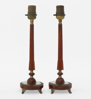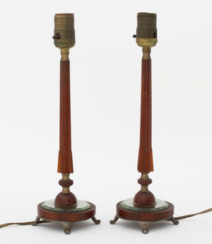 Art Deco Amber Bakelite & Glass Table Lamps, Pair