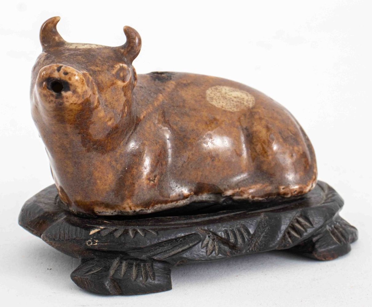 Chinese Ceramic Ox Form Water Dropper on Stand