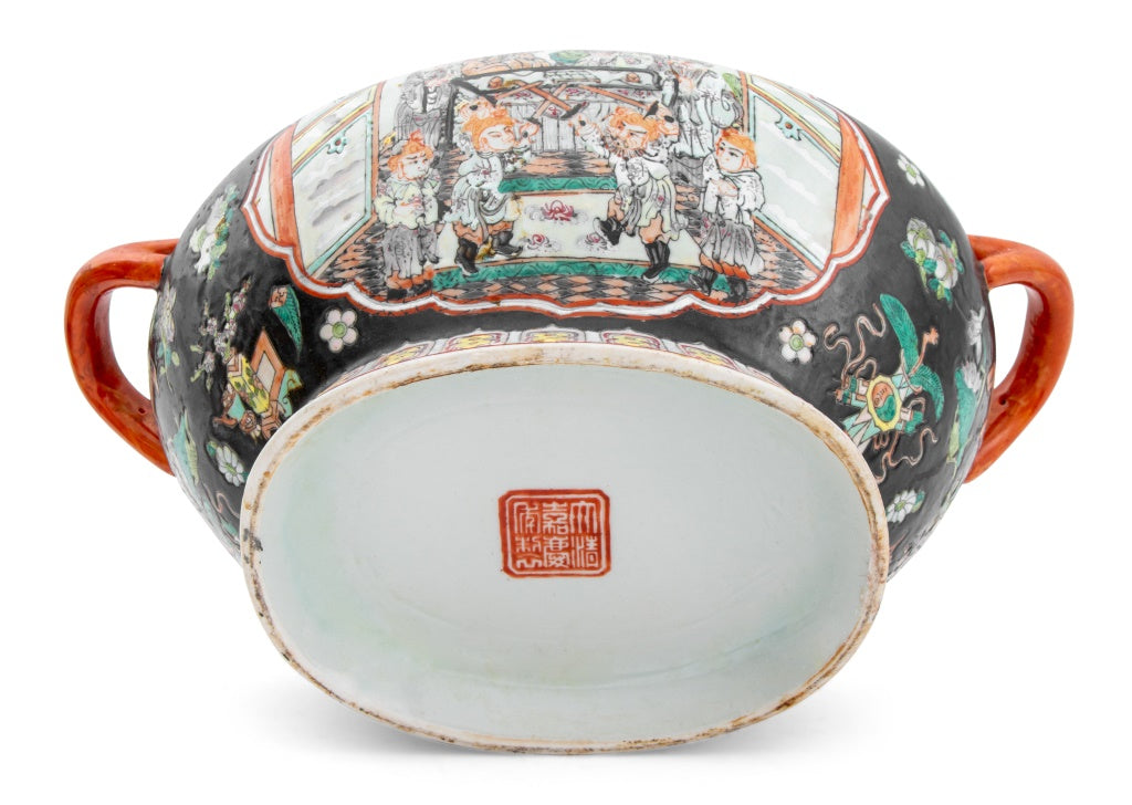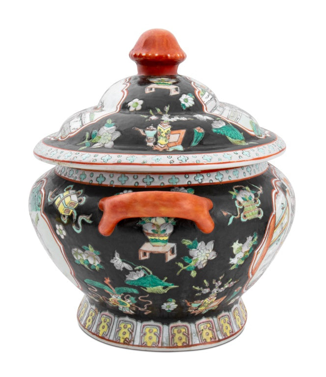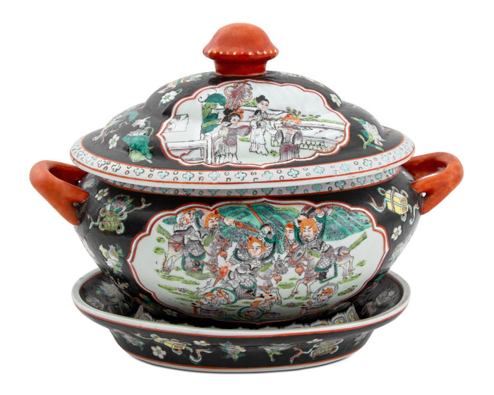 Chinese Famille Noir Porcelain Tureen & Underplate