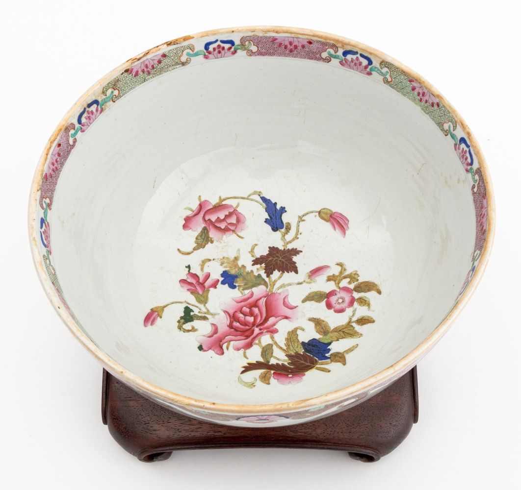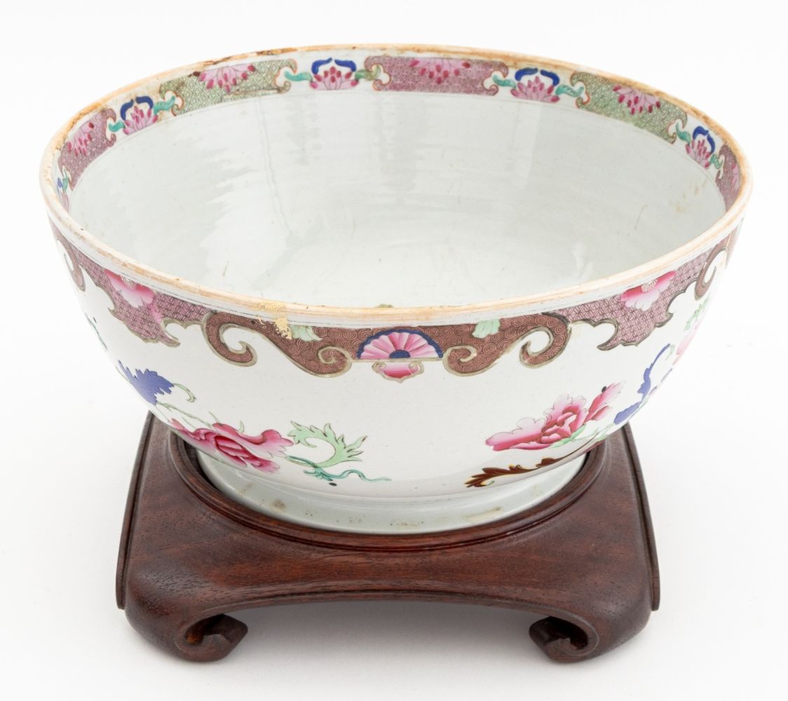 Chinese Famille Rose Porcelain Punch Bowl on Stand