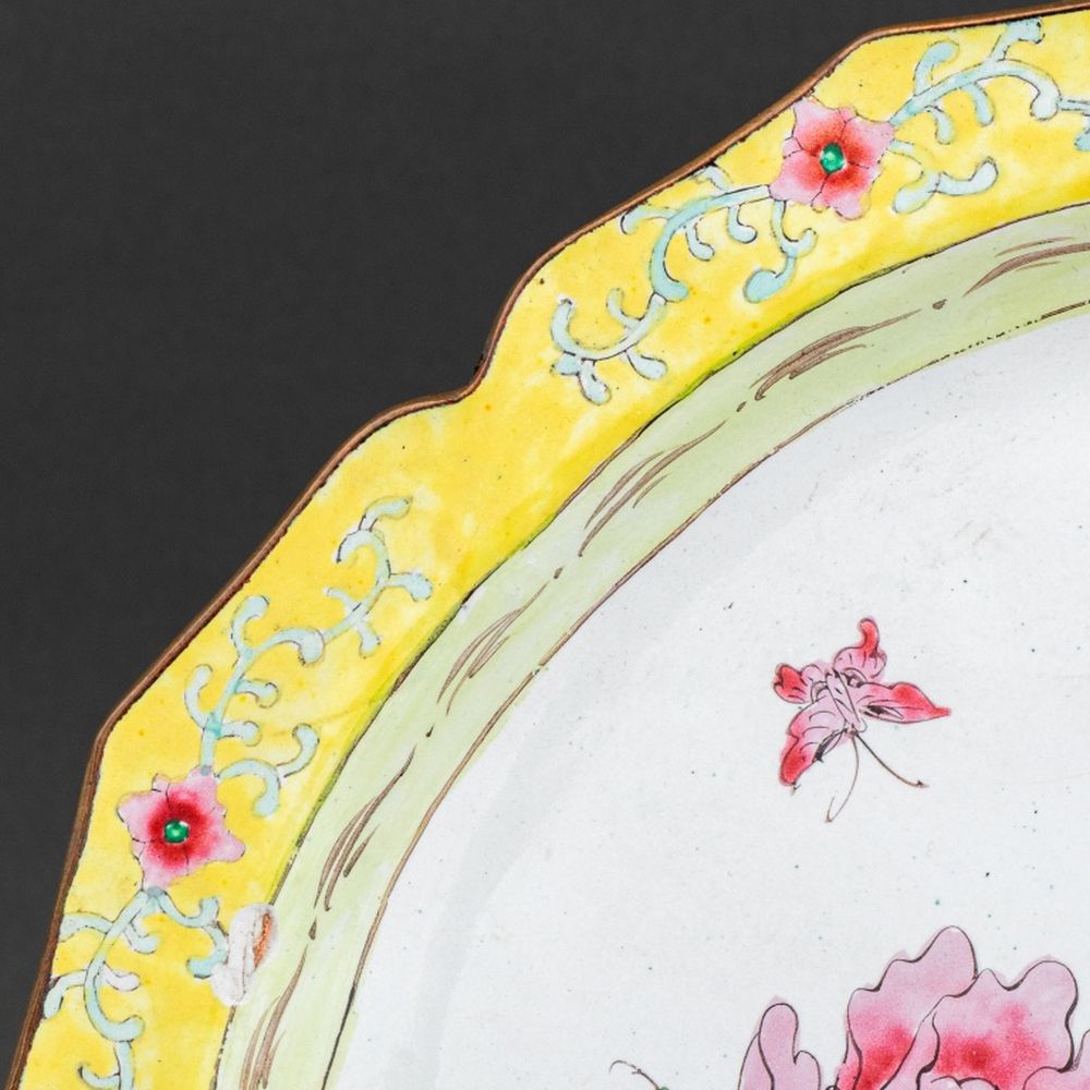 Chinese Floral Motif Enameled Plates, Pair