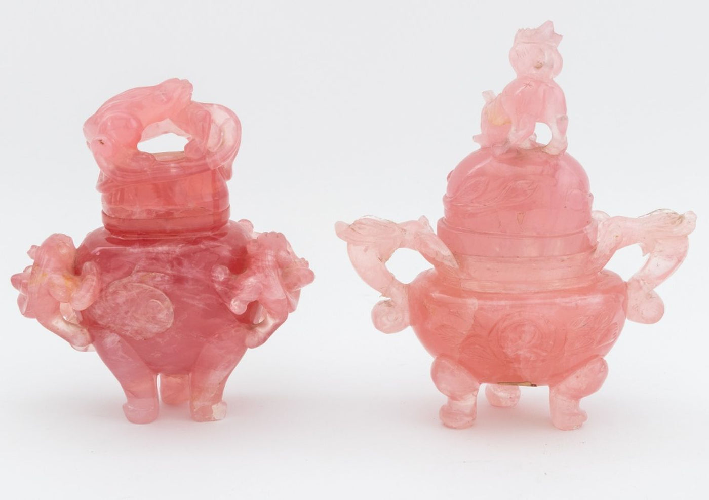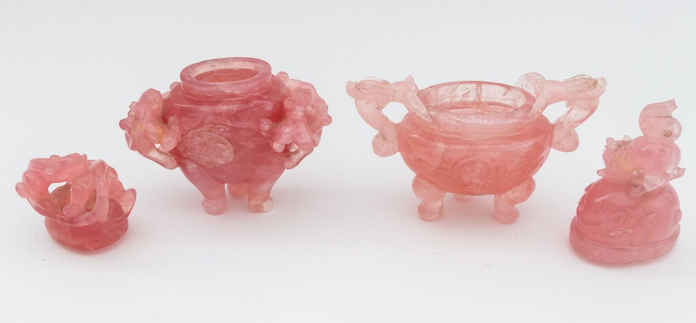 Chinese Pink Rock Crystal Sculptures, 7 Pcs.