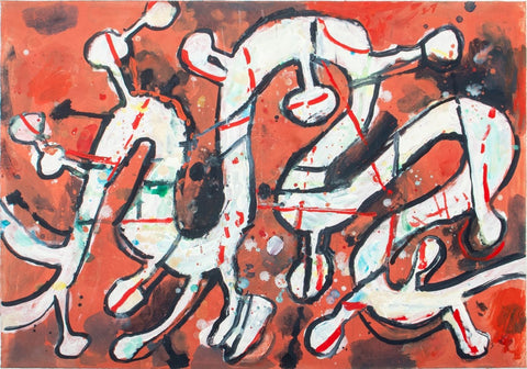Elfi Schuselka (Austrian, b. 1940), Abstract Composition, Mixed Media on Paper, stamped "Studio / Elfi Schuselka" to verso, unframed. 26" H x 18" W. Provenance: From the Collection of the artist. Note: Schuselka studied photography, art history, and theater at the University of Vienna. She moved to New York in 1964. Her work has been exhibited internationally in the United States, Italy, France, and Japan, as well as at the Cracovia Biennial, Yugoslavia, Ibiza Biennial, Spain, and the Sao Paulo Biennial. Her work is part of the permanent collections of the Museum of Modern Art (MoMA), New York, the Amon Carter Museum of American Art, Fort Worth, and the International Centre of Graphic Arts, Slovenia. Long a regular exhibitor at the famed 55 Mercer Gallery, Schuselka is well-known in New York art circles together with her husband, Domenick Capobianco (American, b. 1928). Keywords: Painting, Acrylic, Graphite, Works on paper, Abstraction, Surrealism, Polychrome, Rainbow, Second New York school, Organic forms, Women Artists, 20th Century Art