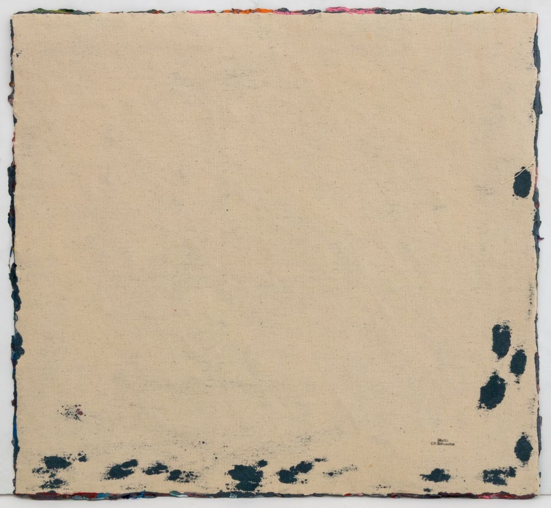 Elfi Schuselka (Austrian, b. 1940), Abstract Composition, Oil on Canvas, apparently unsigned, stamped "Studio Elfi Schuselka" to verso, unstretched, unframed. 21.5" H x 23.5" W. Provenance: From the collection of the artist. Note: Schuselka studied photography, art history, and theater at the University of Vienna. She moved to New York in 1964. Her work has been exhibited internationally in the United States, Italy, France, and Japan, as well as at the Cracovia Biennial, Yugoslavia, Ibiza Biennial, Spain, and the Sao Paulo Biennial. Her work is part of the permanent collections of the Museum of Modern Art (MoMA), New York, the Amon Carter Museum of American Art, Fort Worth, and the International Centre of Graphic Arts, Slovenia. Long a regular exhibitor at the famed 55 Mercer Gallery, Schuselka is well-known in New York art circles together with her husband, Domenick Capobianco (American, b. 1928). Keywords: Paintings, Oil Paintings, Works on Canvas, Abstraction, Polychrome, Geometric, Patterns, Nucleus, Cell, Abstract Expressionist, Expressionism, AbEx, Women Artists, Contemporary Art