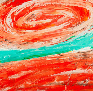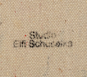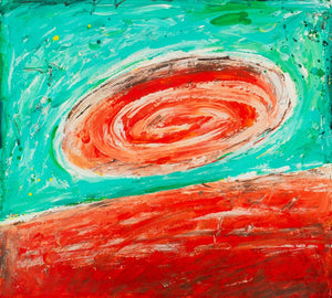 Elfi Schuselka (Austrian, b. 1940), Abstract Composition, Oil on Canvas, apparently unsigned, marked "Burnt Umber" and stamped "Studio Elfi Schuselka" to verso, unstretched, unframed. 21.5" H x 23.5" W. Provenance: From the collection of the artist. Note: Schuselka studied photography, art history, and theater at the University of Vienna. She moved to New York in 1964. Her work has been exhibited internationally in the United States, Italy, France, and Japan, as well as at the Cracovia Biennial, Yugoslavia, Ibiza Biennial, Spain, and the Sao Paulo Biennial. Her work is part of the permanent collections of the Museum of Modern Art (MoMA), New York, the Amon Carter Museum of American Art, Fort Worth, and the International Centre of Graphic Arts, Slovenia. Long a regular exhibitor at the famed 55 Mercer Gallery, Schuselka is well-known in New York art circles together with her husband, Domenick Capobianco (American, b. 1928). Keywords: Paintings, Works on Canvas, Impasto, Texture, Abstraction, Polychrome, Turquoise, Red, Geometric, Patterns, Spiral, Abstract Expressionist, Abstract Expressionism, AbEx, Women Artists, Contemporary Art