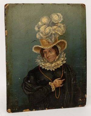English Portrait of a Woman Oil on Panel, 19th C.