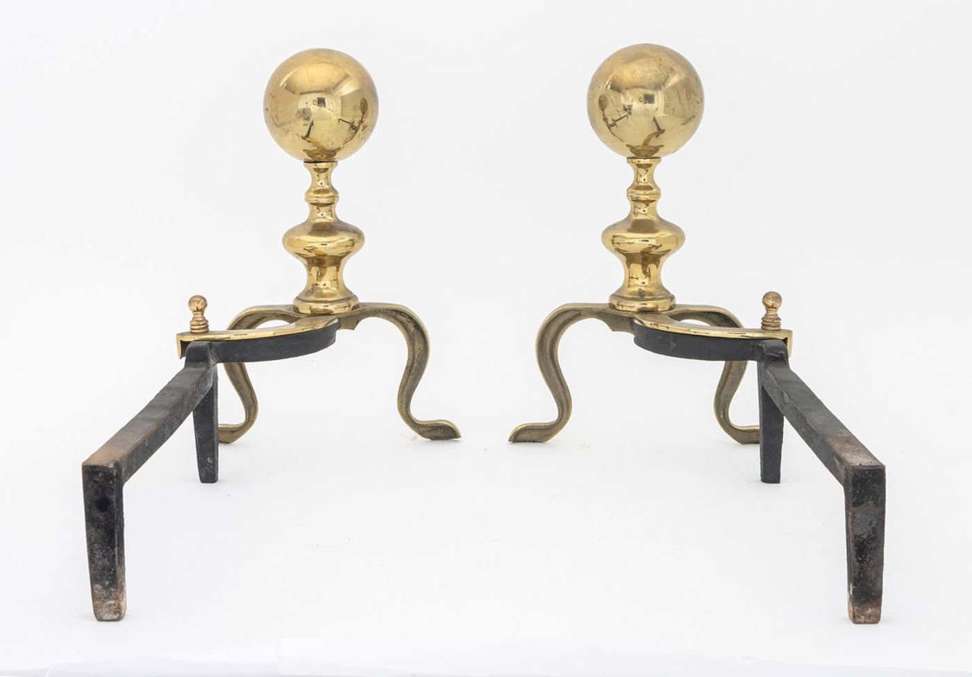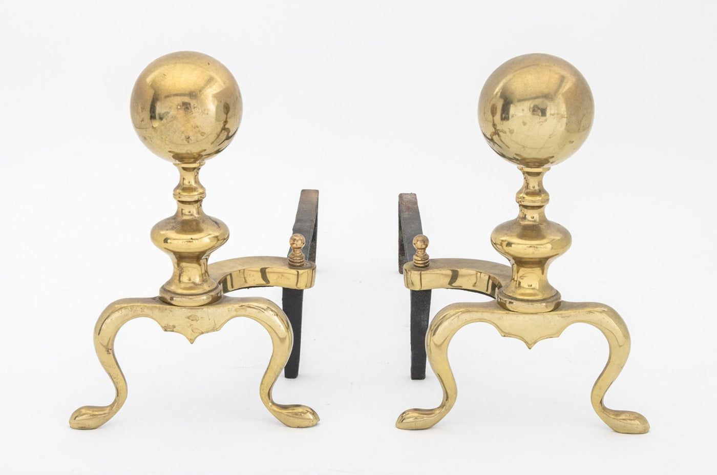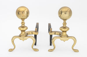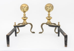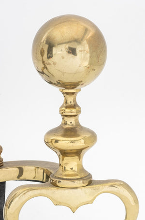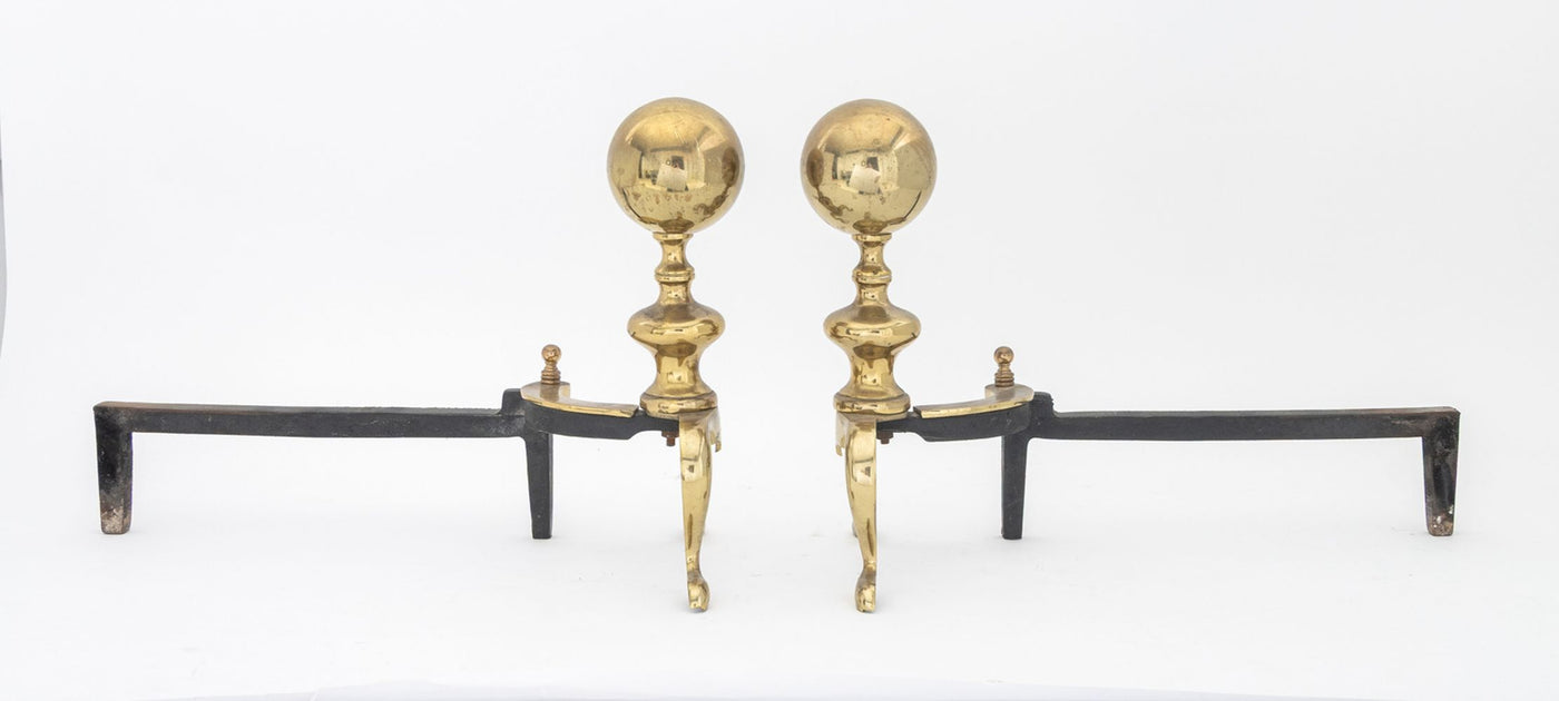 Federal Style Brass Ball-Topped Andirons, Pair