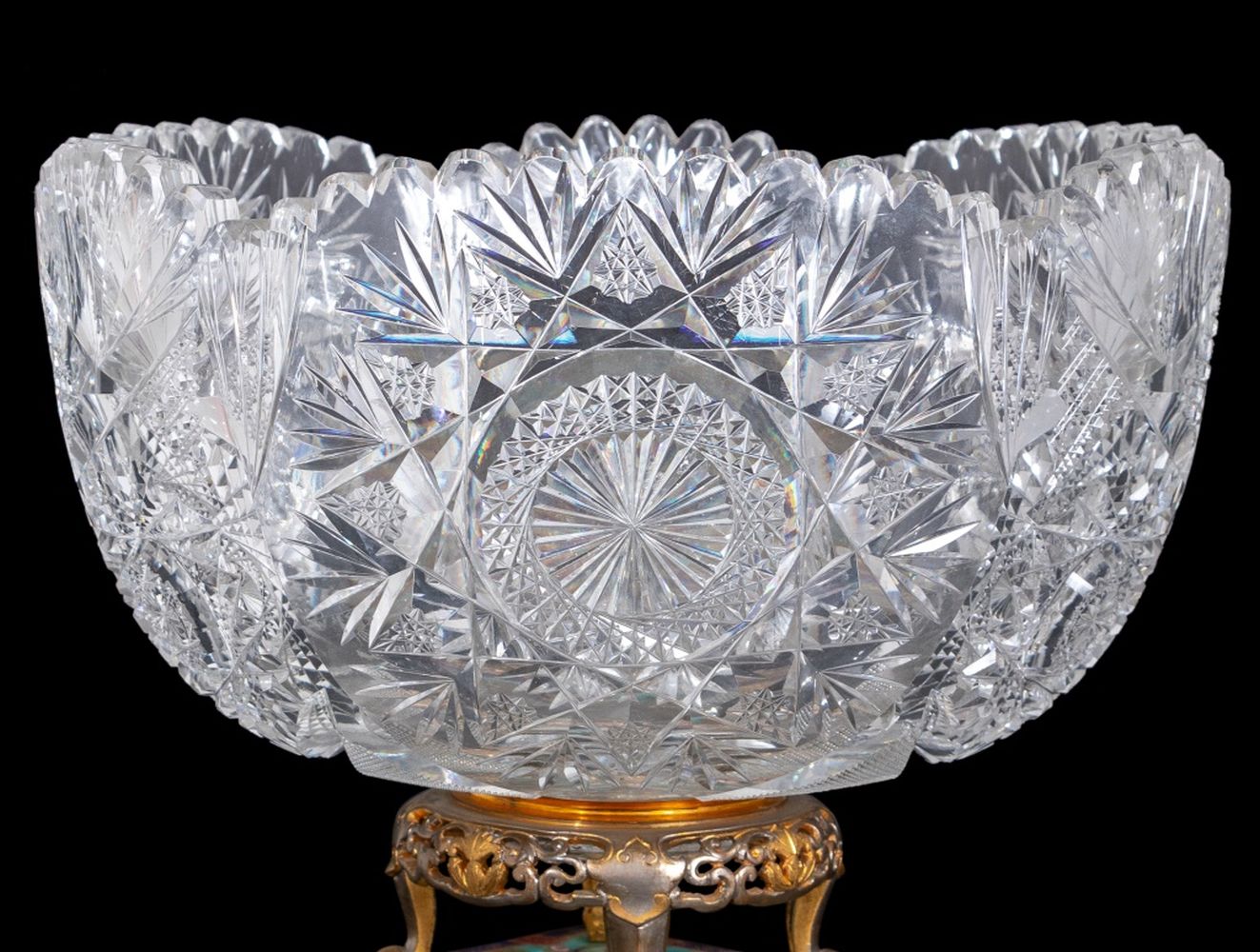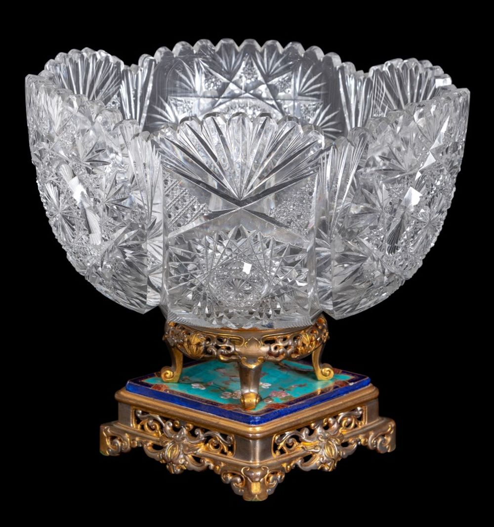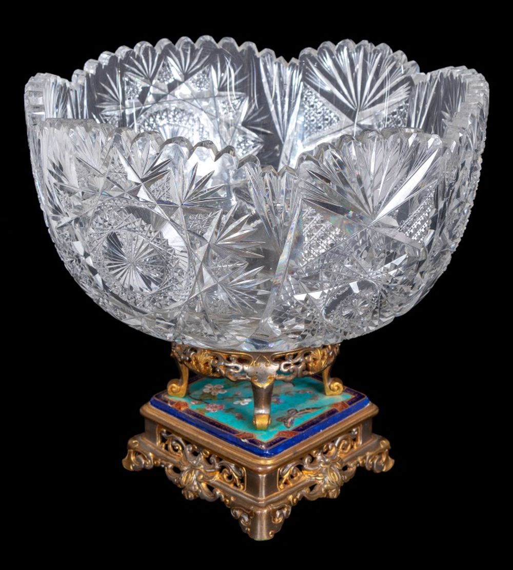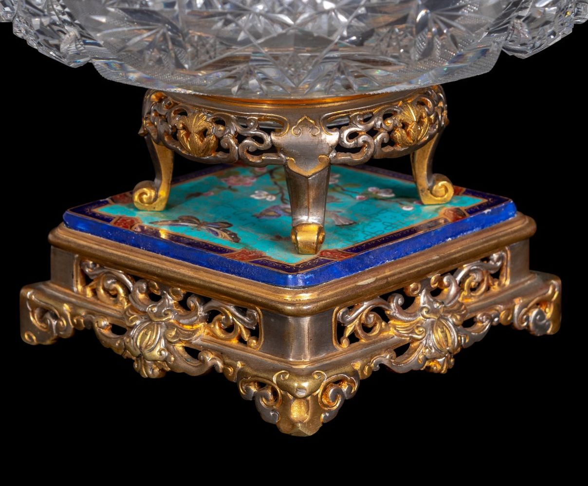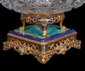 French Enamel Gilt Metal and Cut Glass Centerpiece