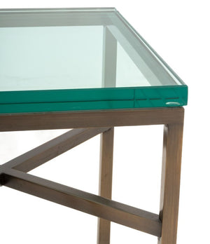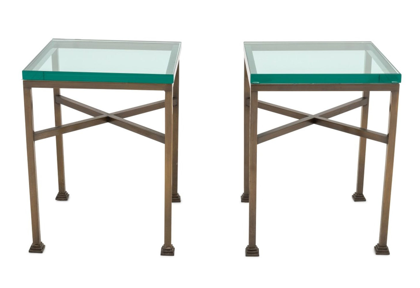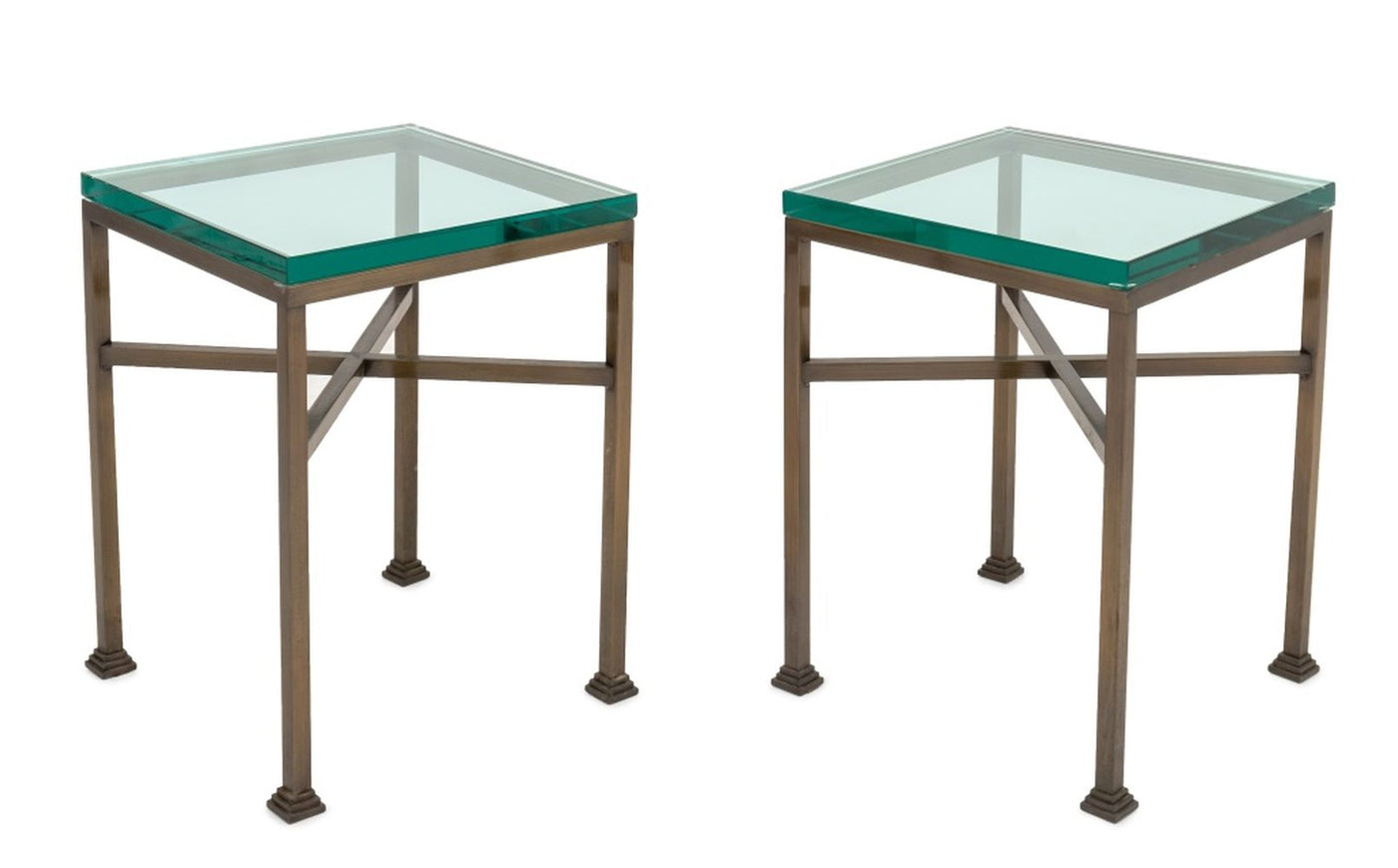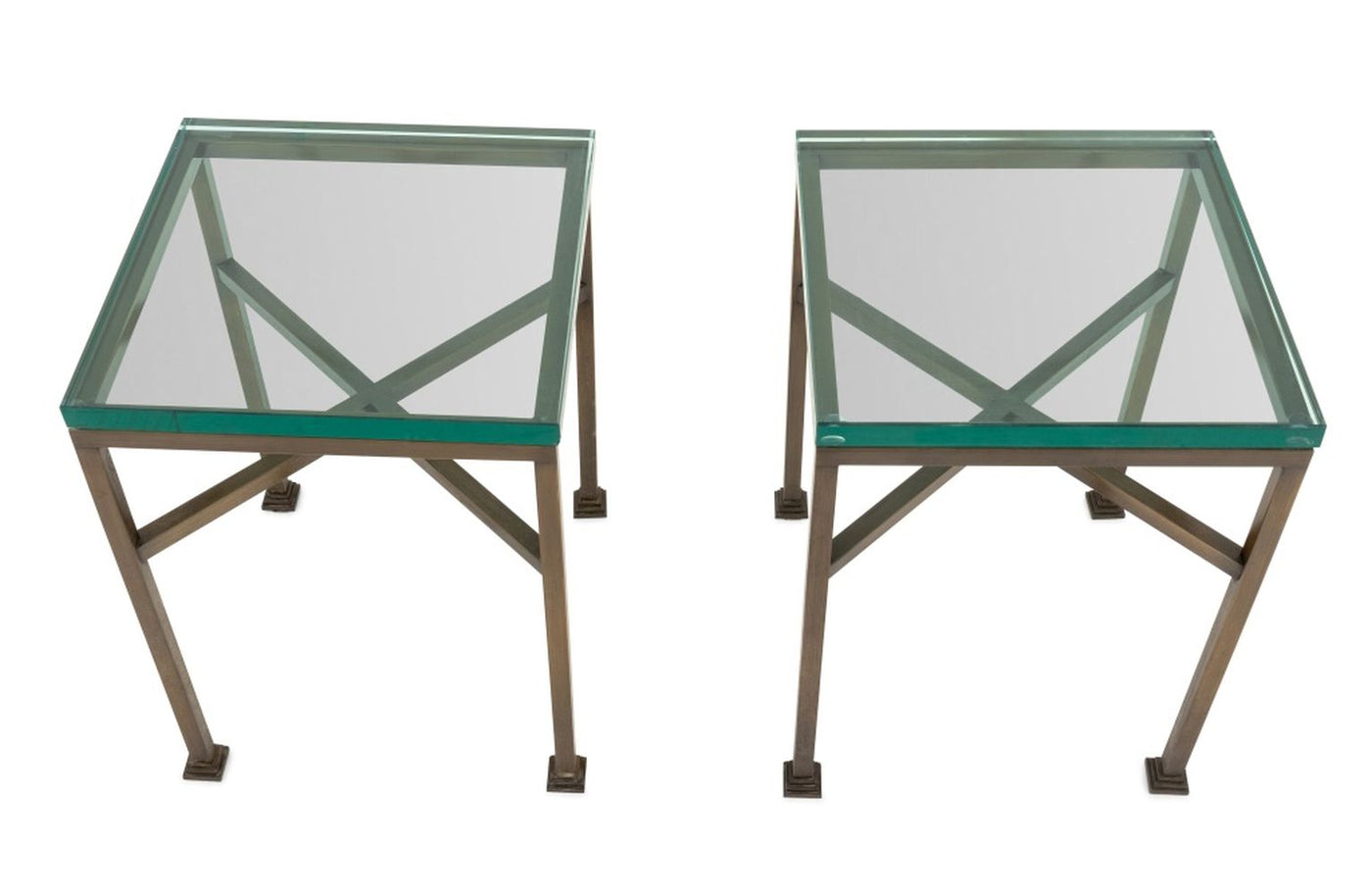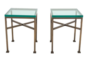 Glass-Topped Metal Side Tables, Pair