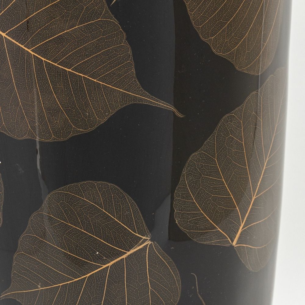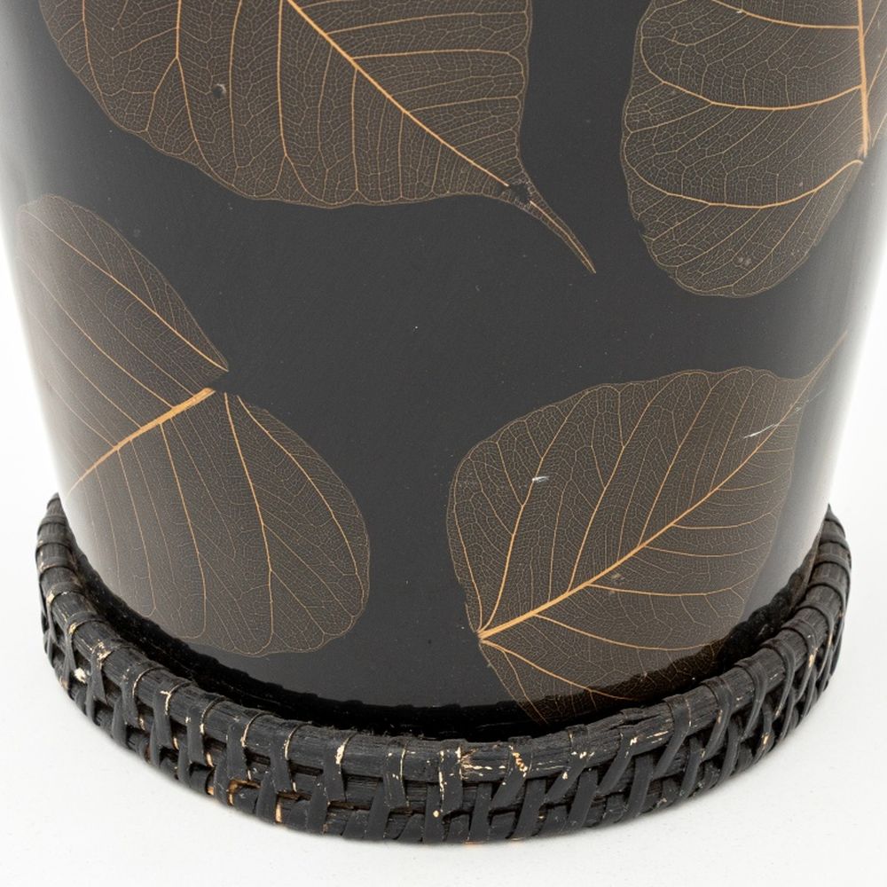Japanese Black Lacquered and Pressed Leaf Vase