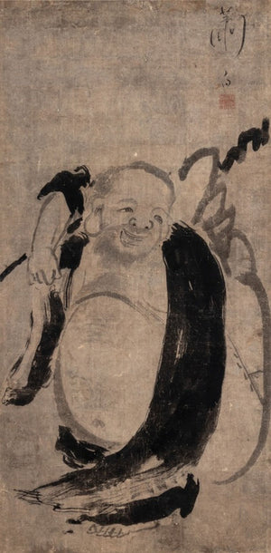 Japanese Hotei Buddha Ink on Paper, 19th C.