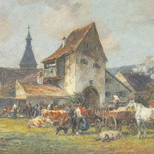 Karl Stuhlmuller "Market Scene" Oil on Panel