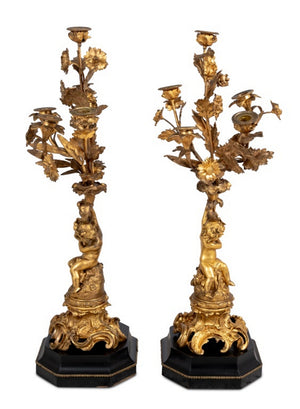 Louis XV Style Gilt Bronze Figural Candelabra, Pair