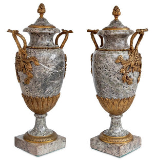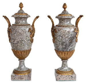 Louis XVI Style Gilt Bronze and Granite Urns, Pair