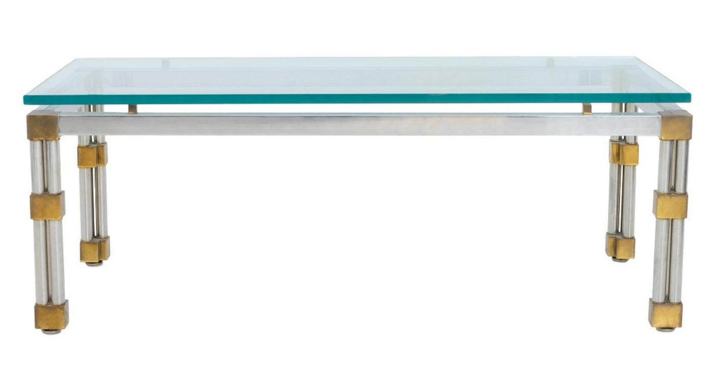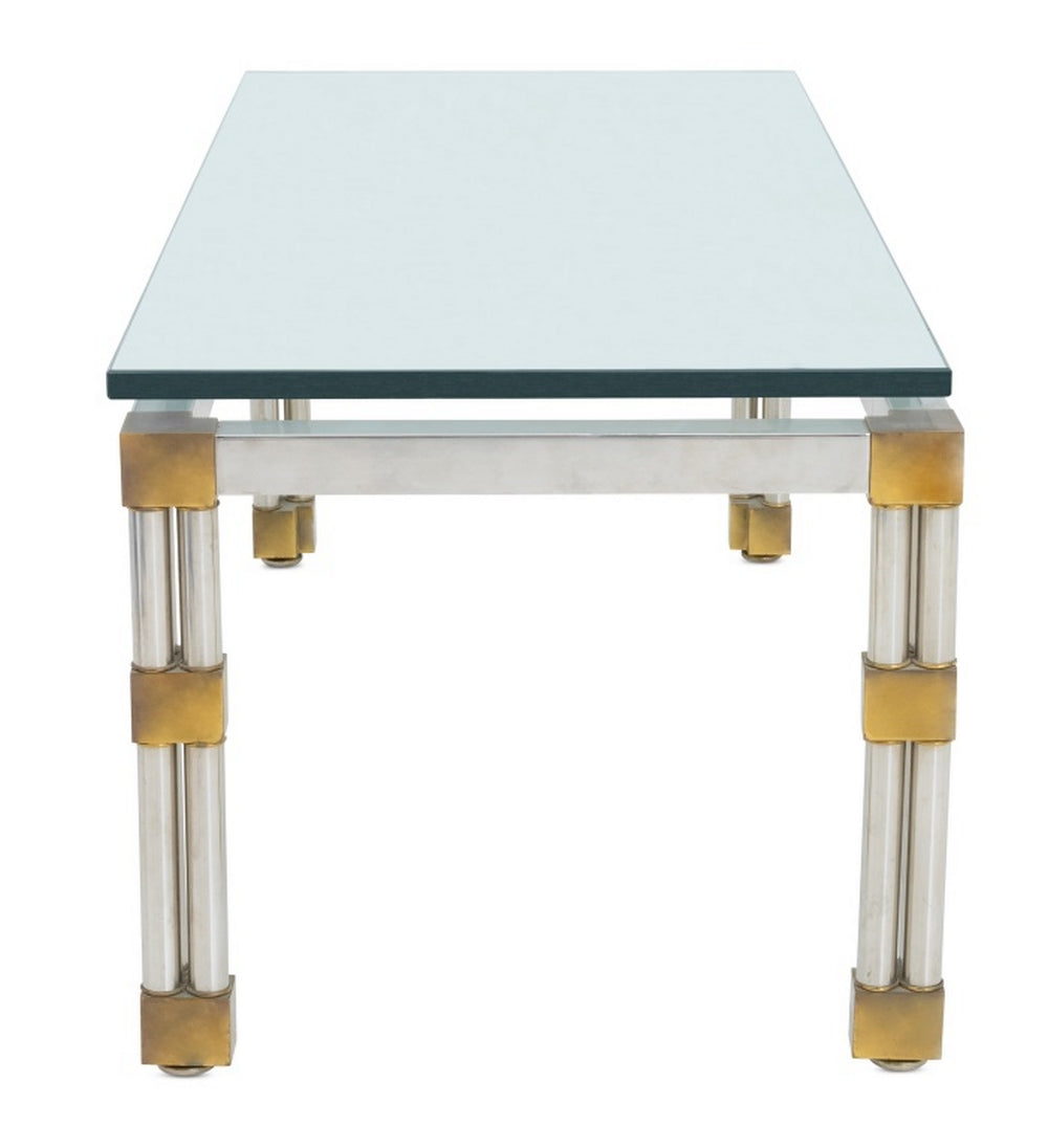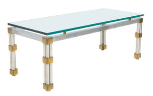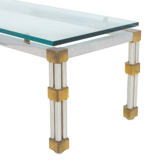 Maison Jansen Style Chrome Glass Top Coffee Table