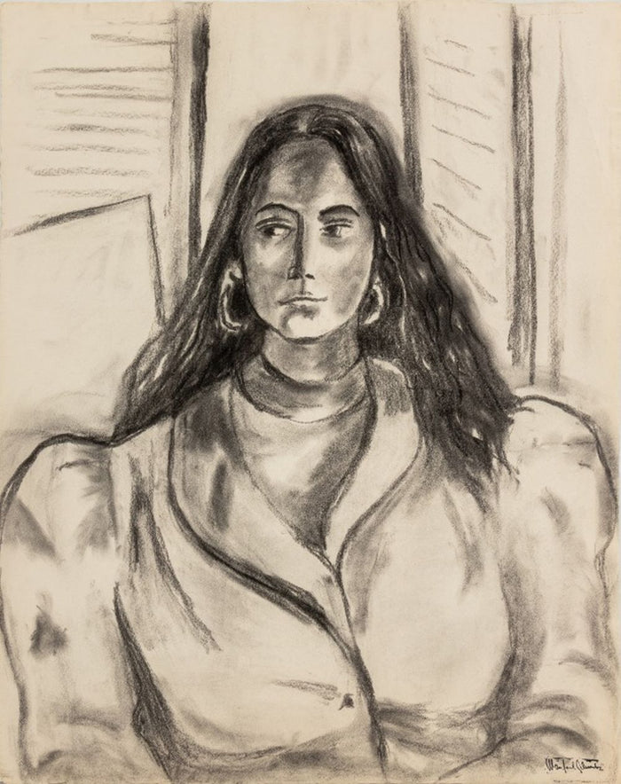 Manfred Schwartz (American, b. Poland, 1909-1970), Portrait of a Woman, Charcoal on Paper, with the artist's signature stamped lower right, unframed. 24.25" H x 19" W. Provenance: From a 35 East 75th Street Estate. Keywords: Drawing, Works on Paper, Model study, Female Figure, Figural, Figurative, Provincetown, P-town Artist, Post-War Art