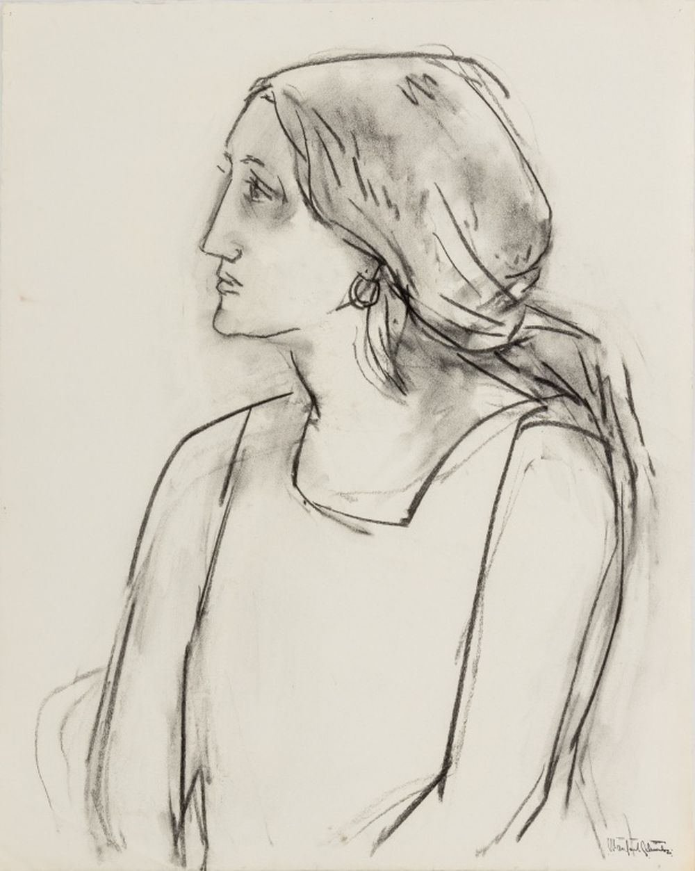 Manfred Schwartz Portrait of a Woman Charcoal