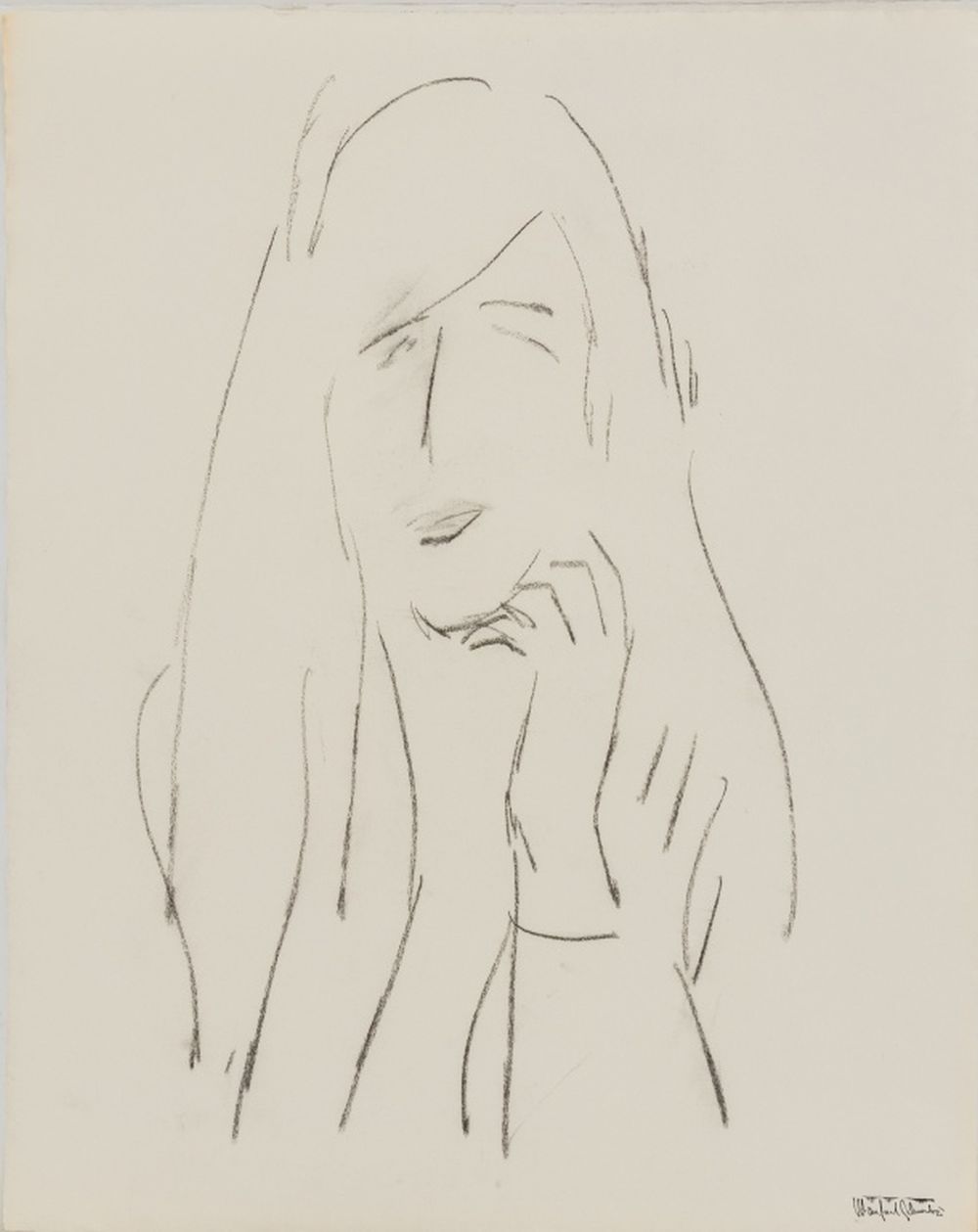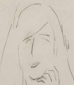Manfred Schwartz (American, b. Poland, 1909-1970), Portrait of a Woman, Charcoal on Paper, with the artist's signature stamped lower right, unframed. 24" H x 19" W. Provenance: From a 35 East 75th Street Estate. Keywords: Drawing, Works on Paper, Model study, Female Figure, Figural, Figurative, Thinker, Provincetown, P-town Artist, Post-War Art