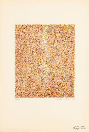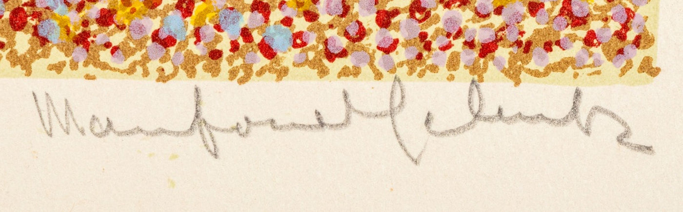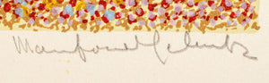Manfred Schwartz (American, b. Poland, 1909-1970), Rivulets in Red, Lithograph on Paper, mid 20th century, numbered edition "20/30" lower left, signed in pencil and with artist’s signature stamped lower right, unframed. Image: 10.5" H x 8.5" W; sheet: 18.5" H x 12.5" W. Provenance: From a 35 East 75th Street Estate. Keywords: Print, Multiple, Abstract Composition, Abstraction, Whimsical, Colorful, Polychrome, Sands, Beach, Provincetown, P-town Artist, Pointillist, Pointillism, Post-War Art