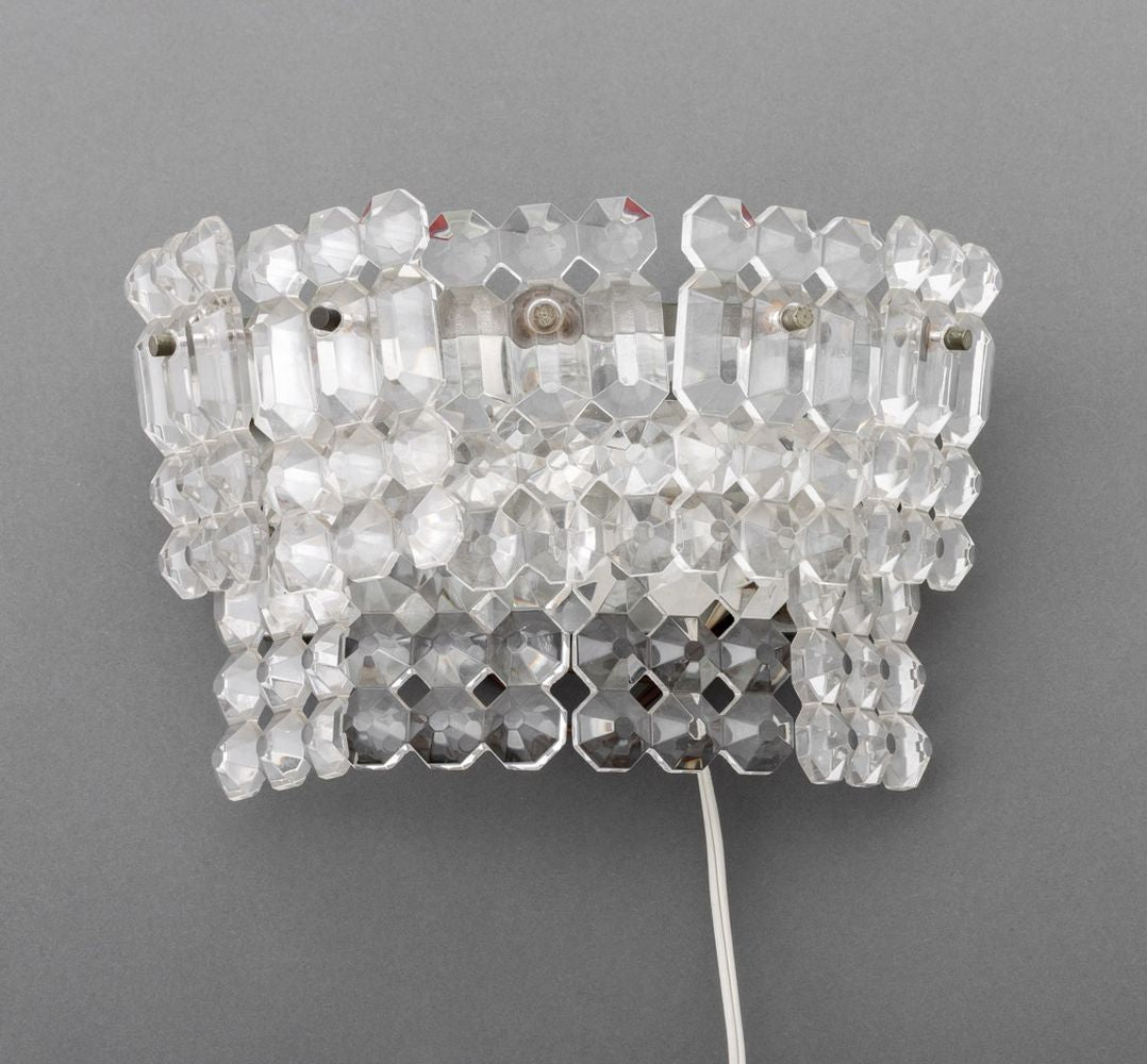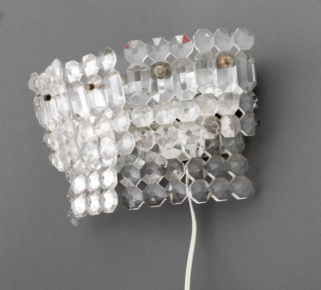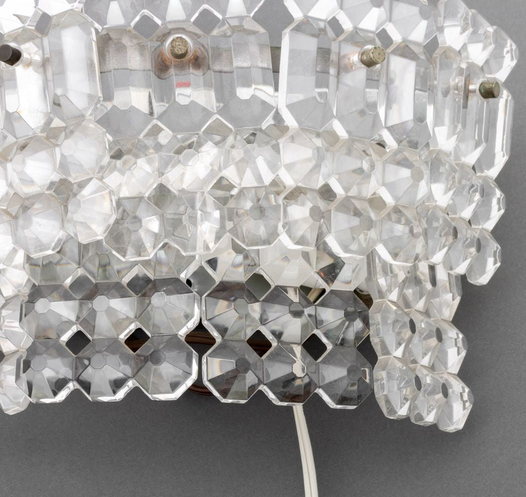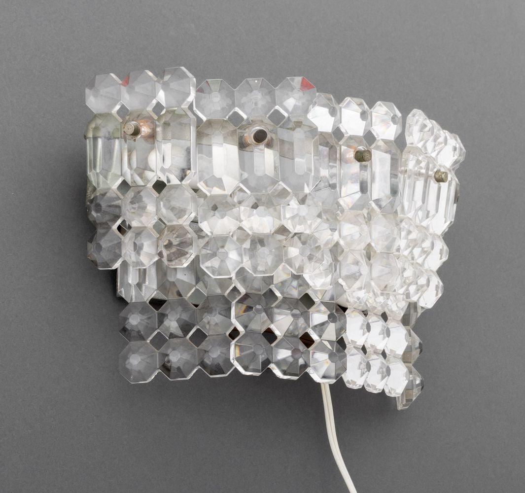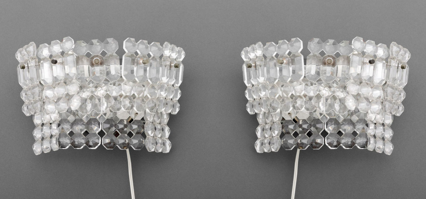 Mid-Century Italian Wall Lights with Faceted Glass Trim, Pair