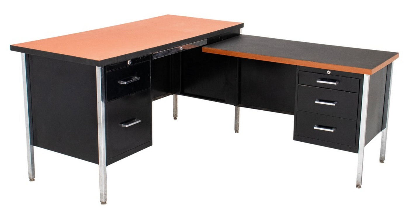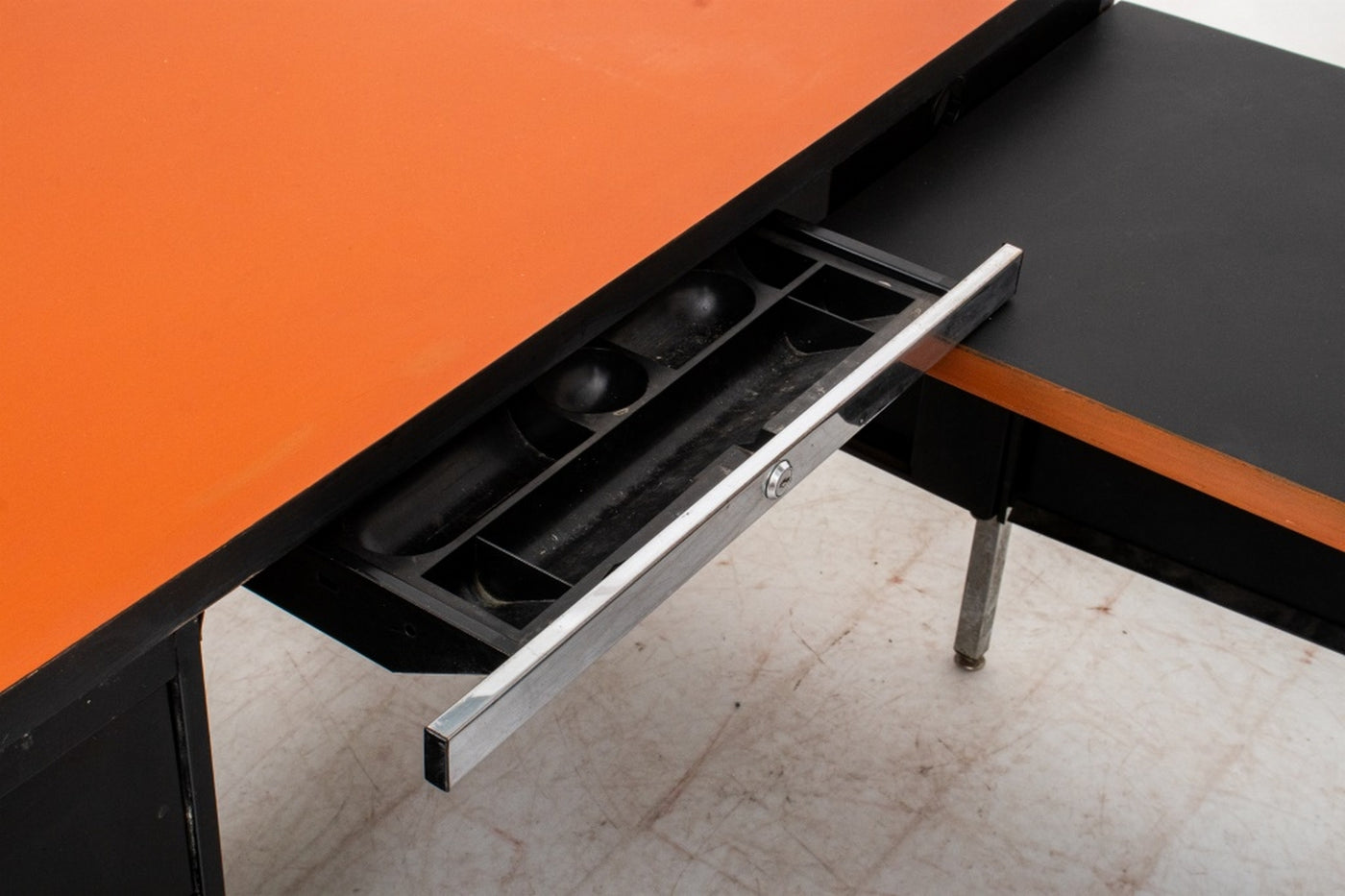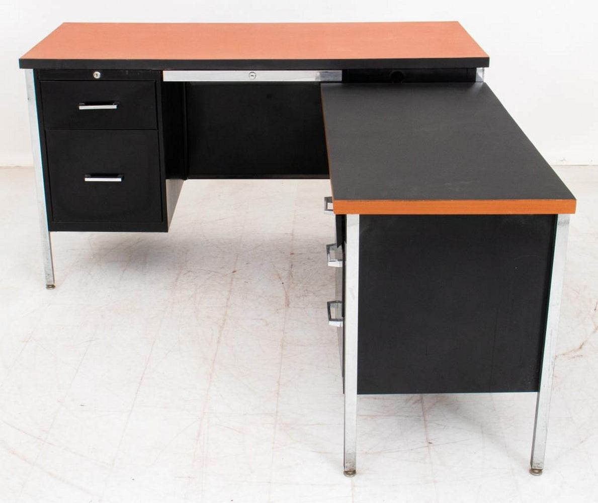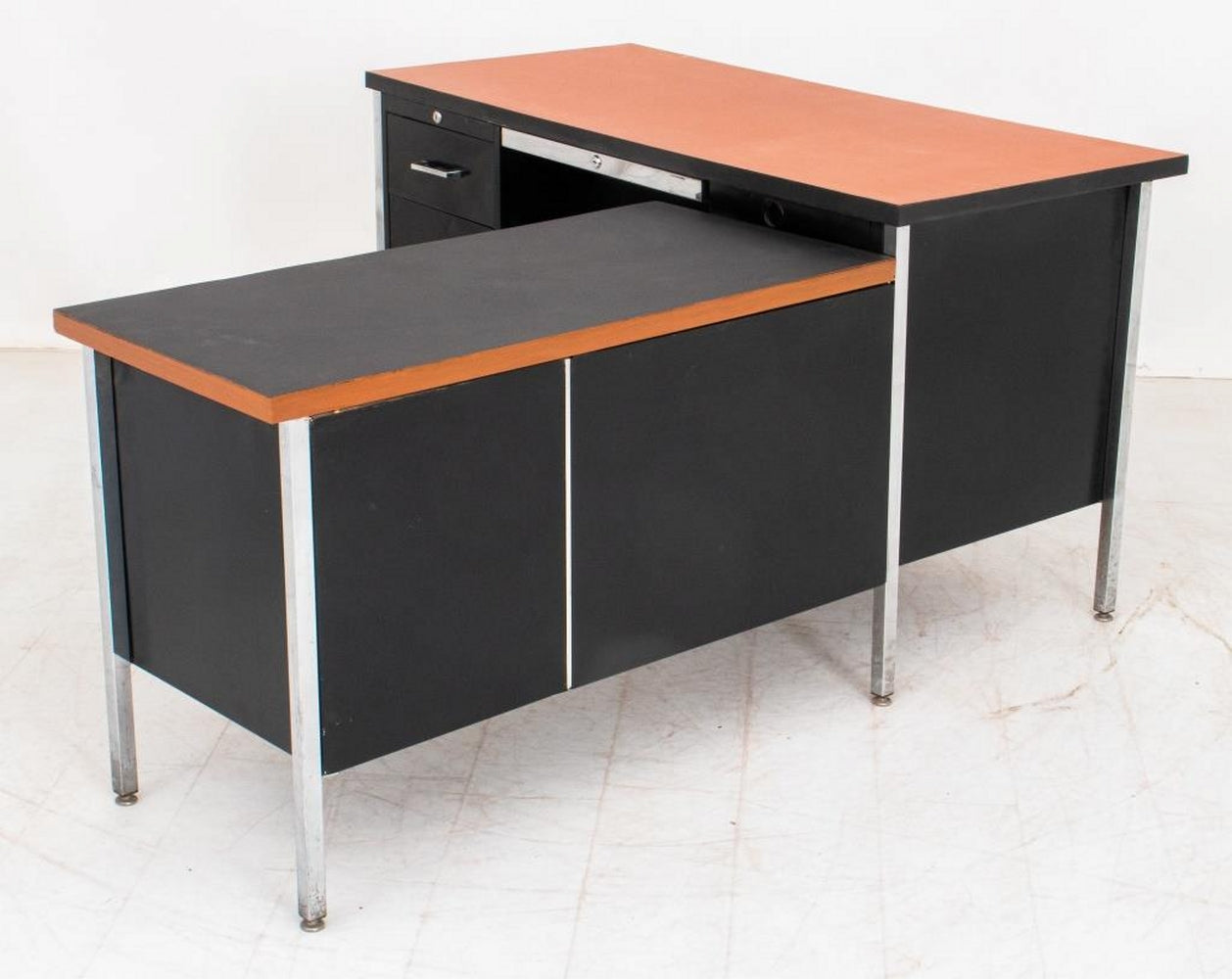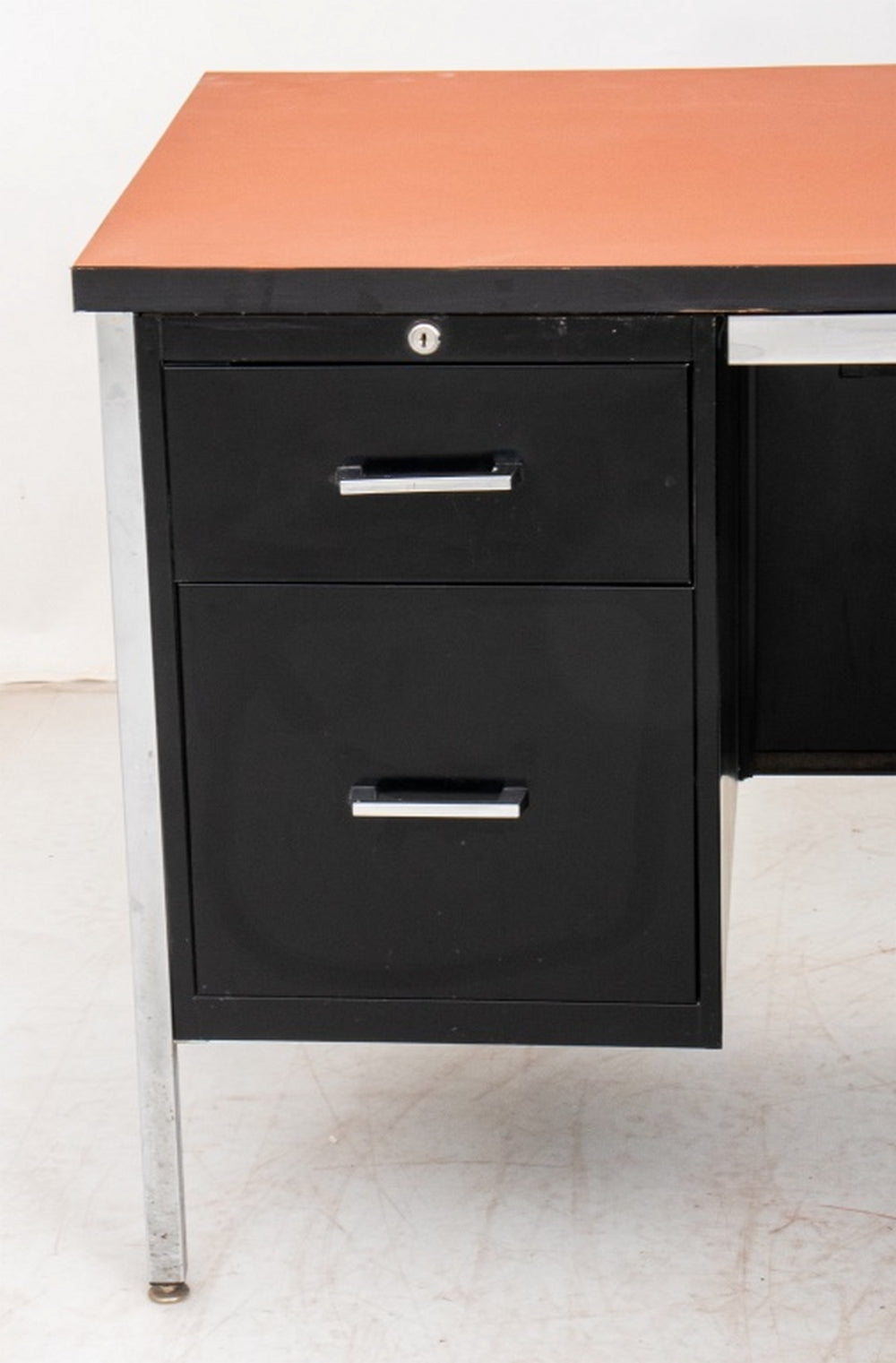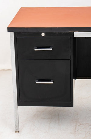 Mid-Century Modern Black Aluminum & Chrome Desk